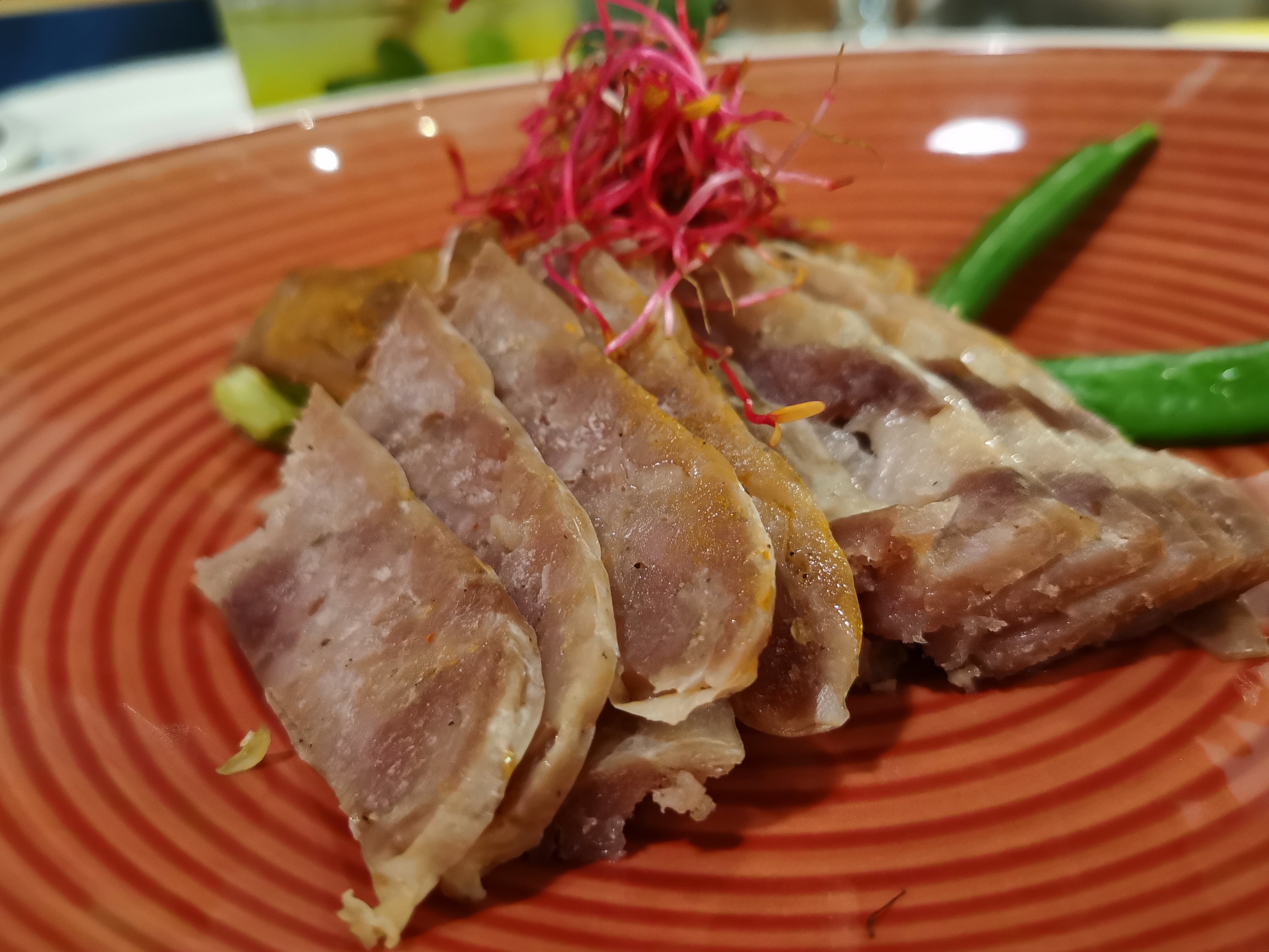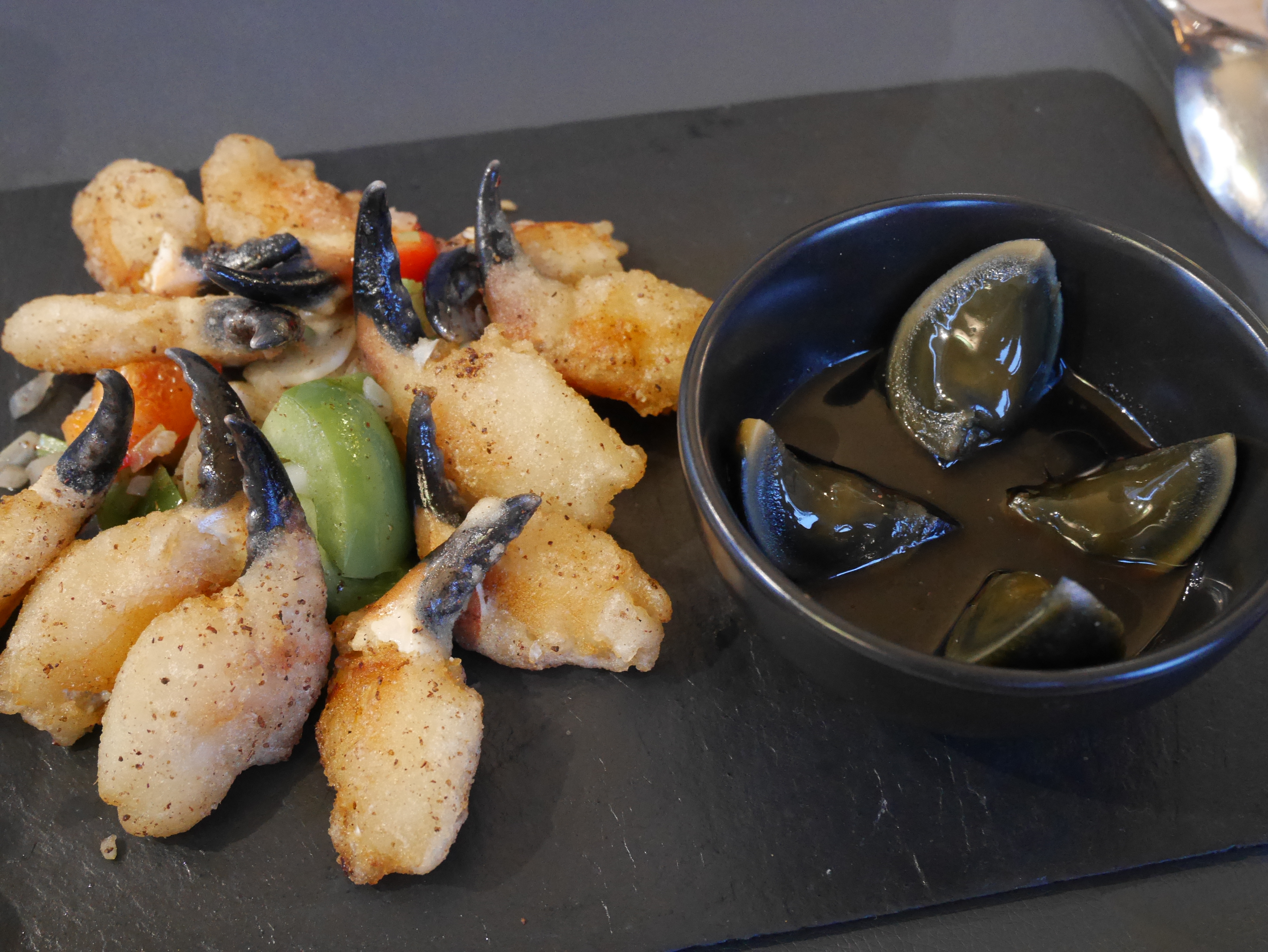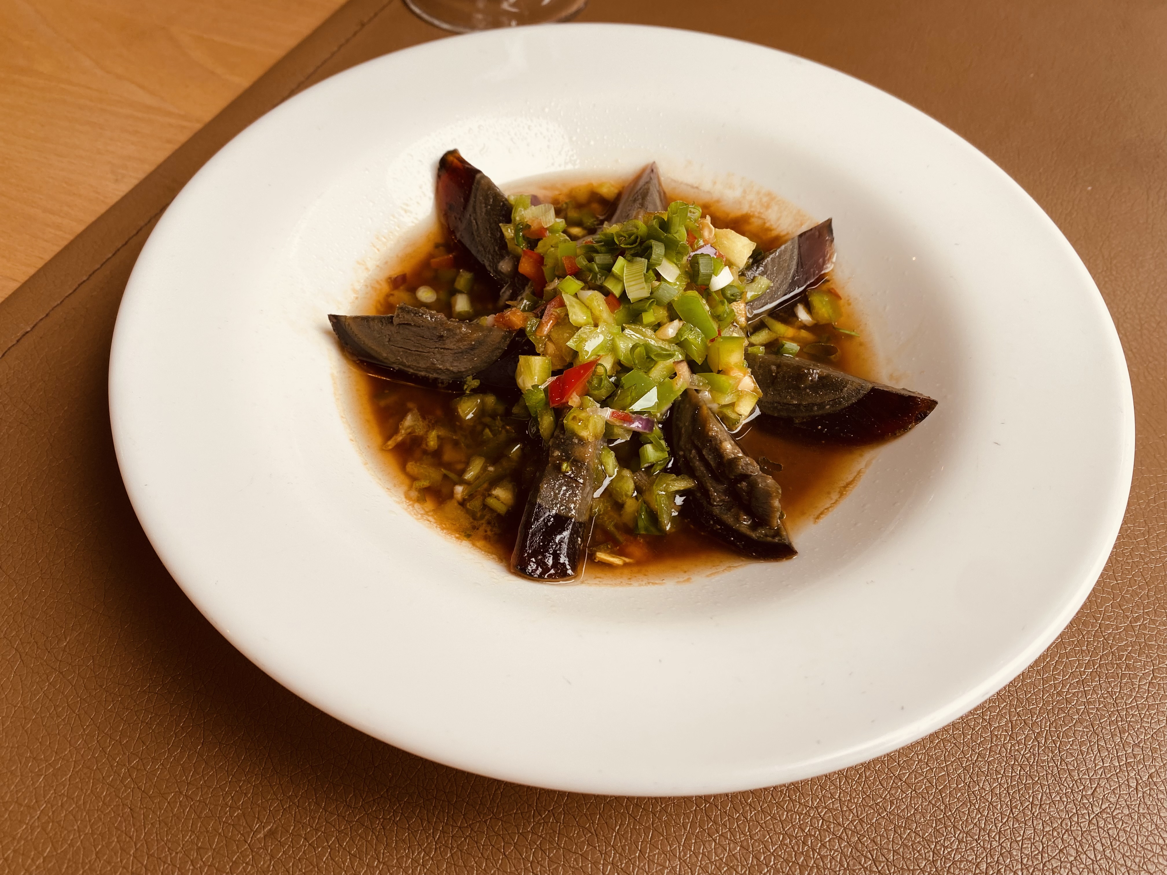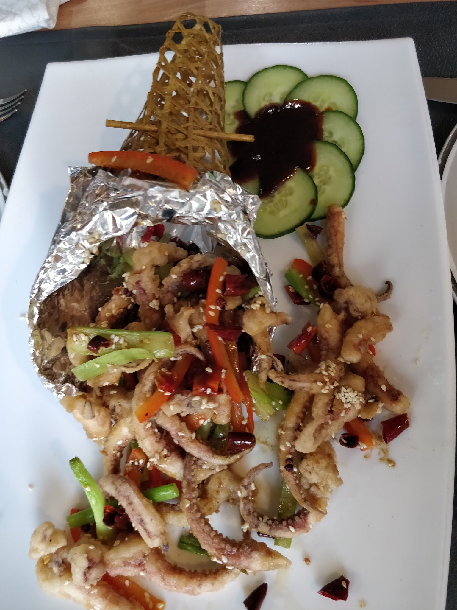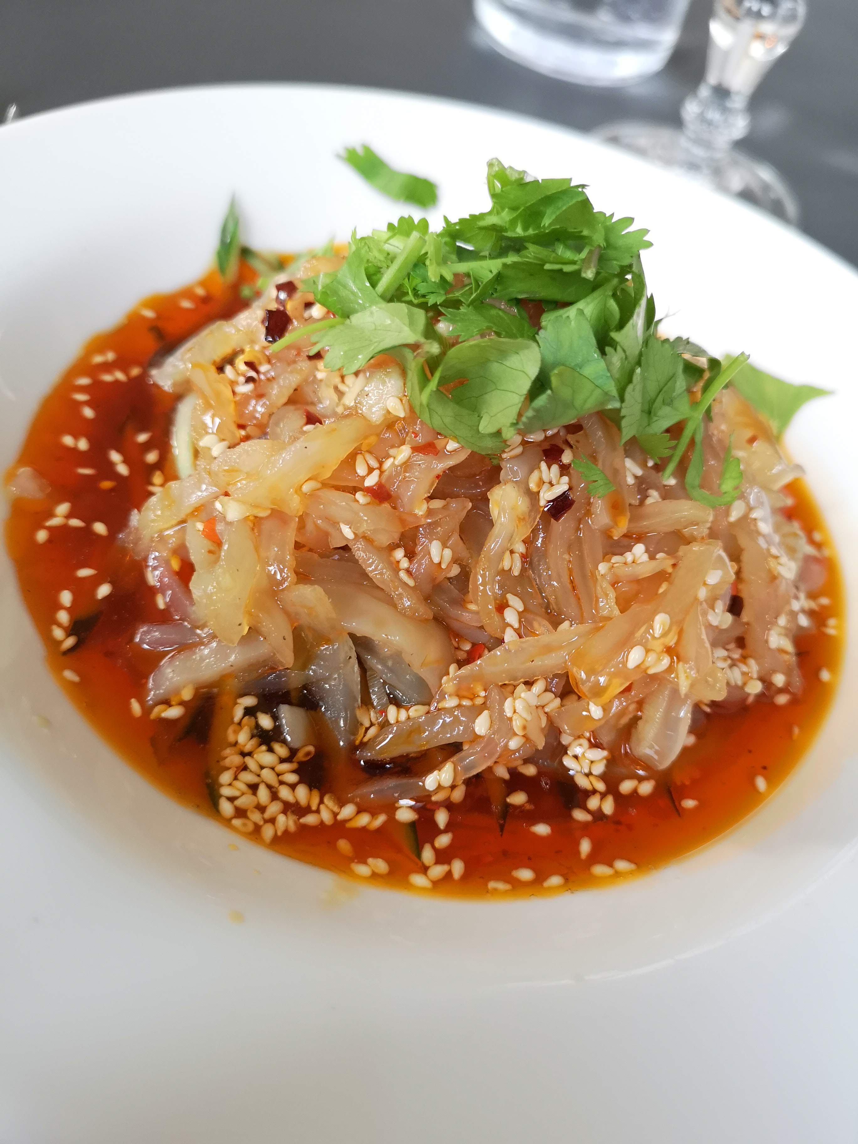 Cuisine différente. On peut ne pas être fan de tout et il faut bien faire son choix. Les calmars farcis à l'oreille de porc ne nous ont pas laissé un souvenir impérissable et le boeuf séché non plus. Le bar en revanche, si! Le chou chinois au poivre est très bon aussi. Mais même quand on est surpris ou pas super fan c'est original, fait maison, bien préparé.