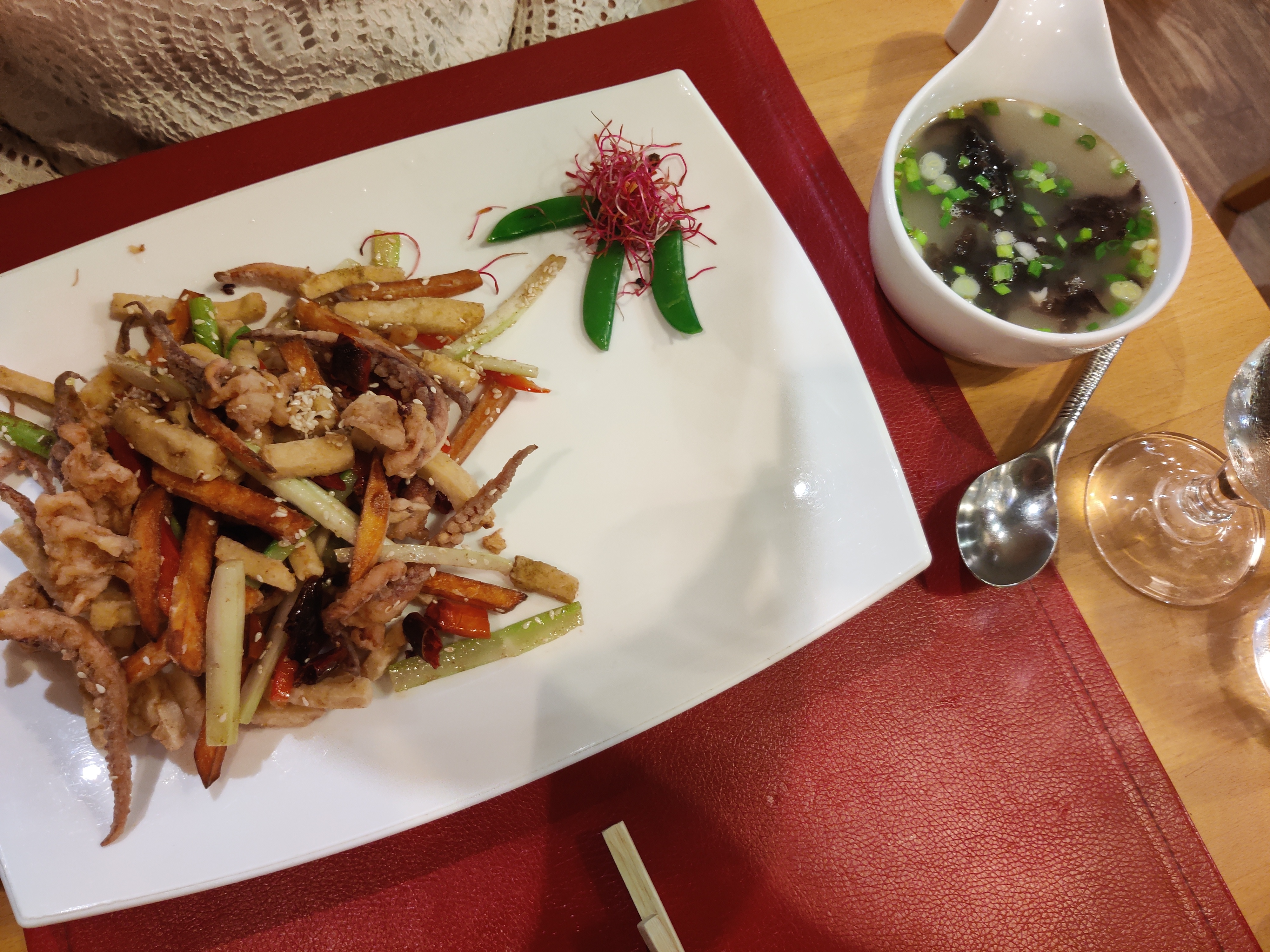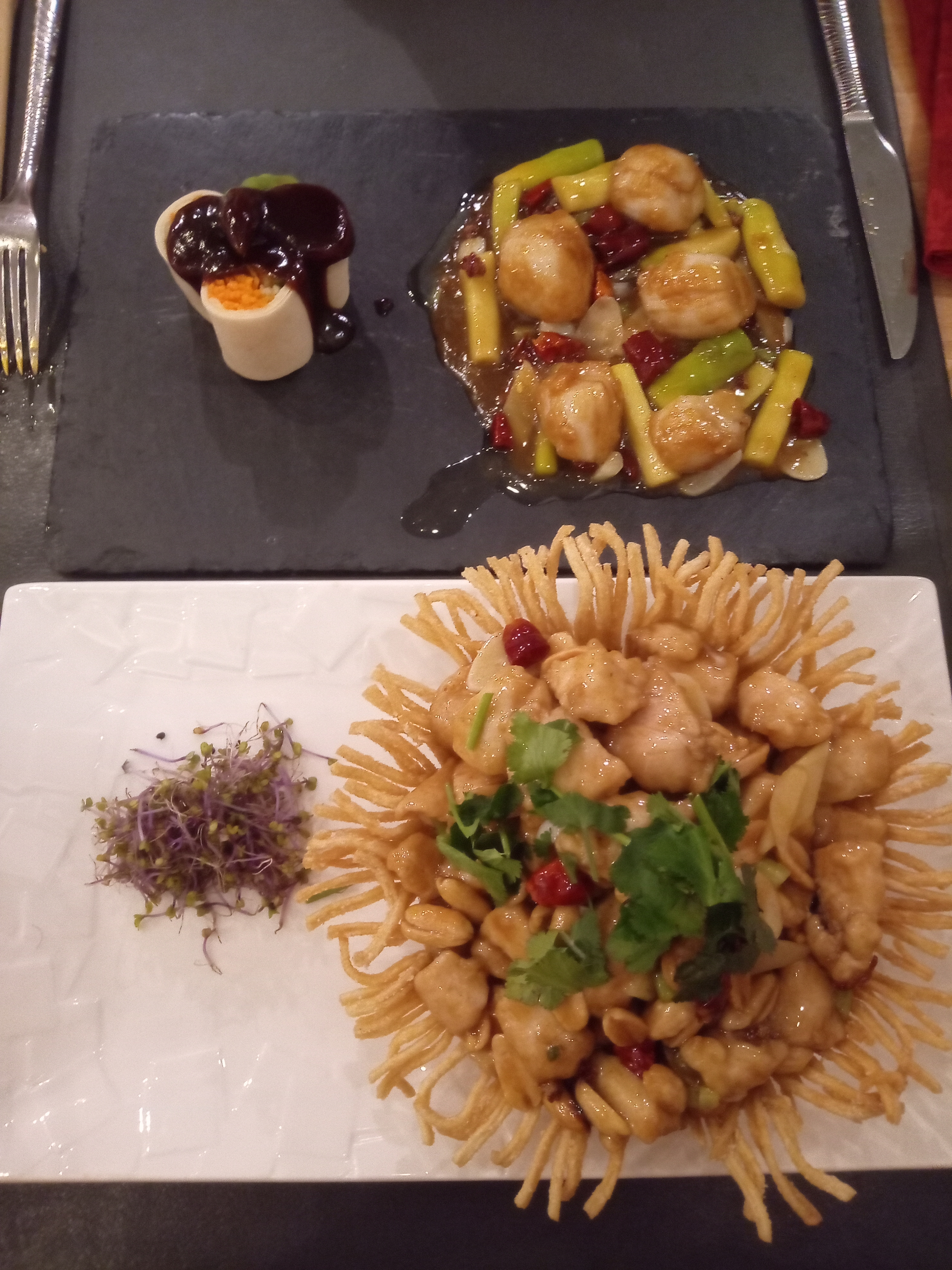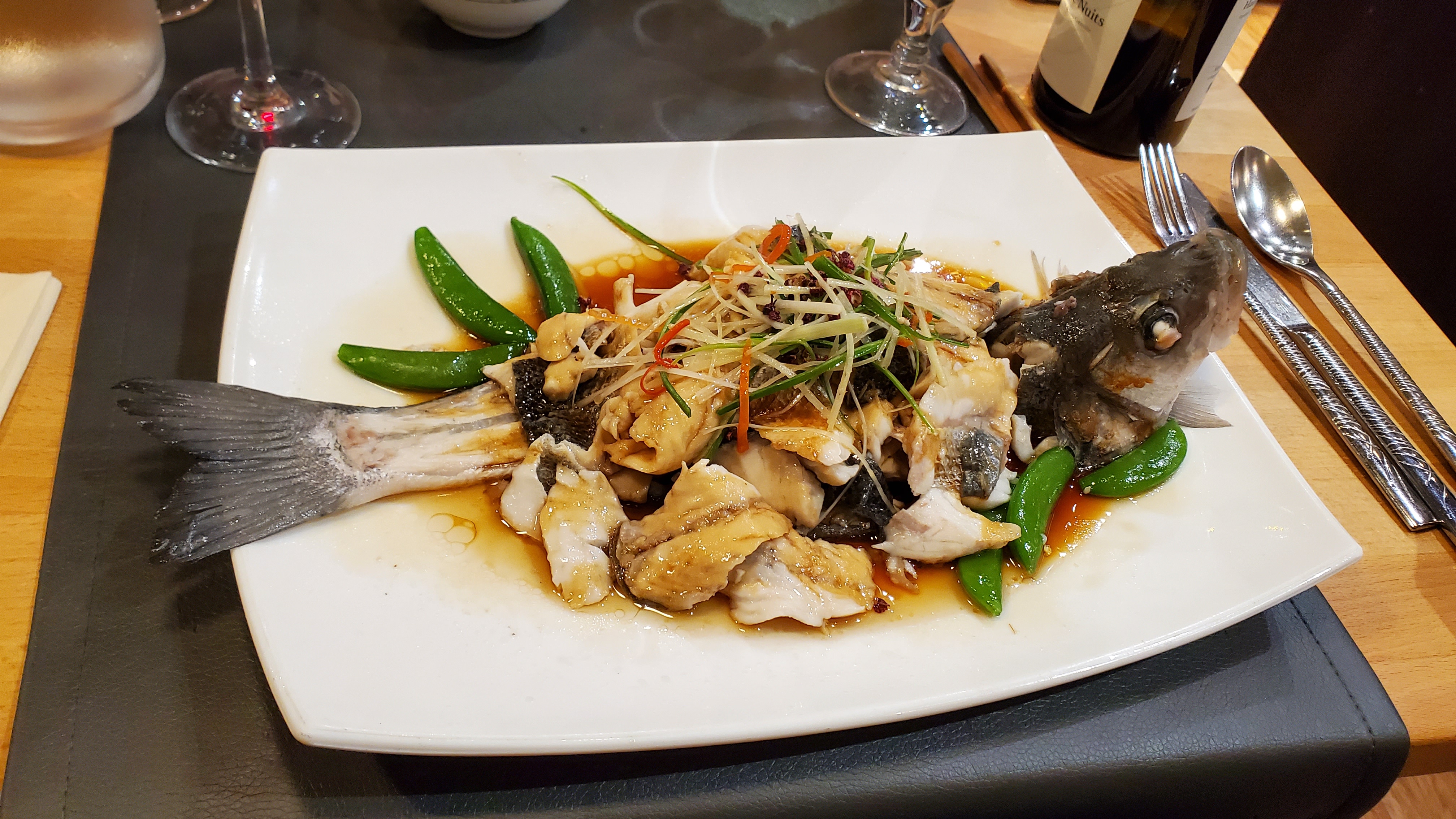 Belle découverte , certains plats sont très intéressants et atypiques .Belle présentation. Service agréable. Quelques ajustements , bar vapeur délicieux mais sauce trop salée; bouillon de légumes délicieux mais avec de l' huile....., le thé au gingembre ne peut etre servi sans miel car ce sont des sachets ....