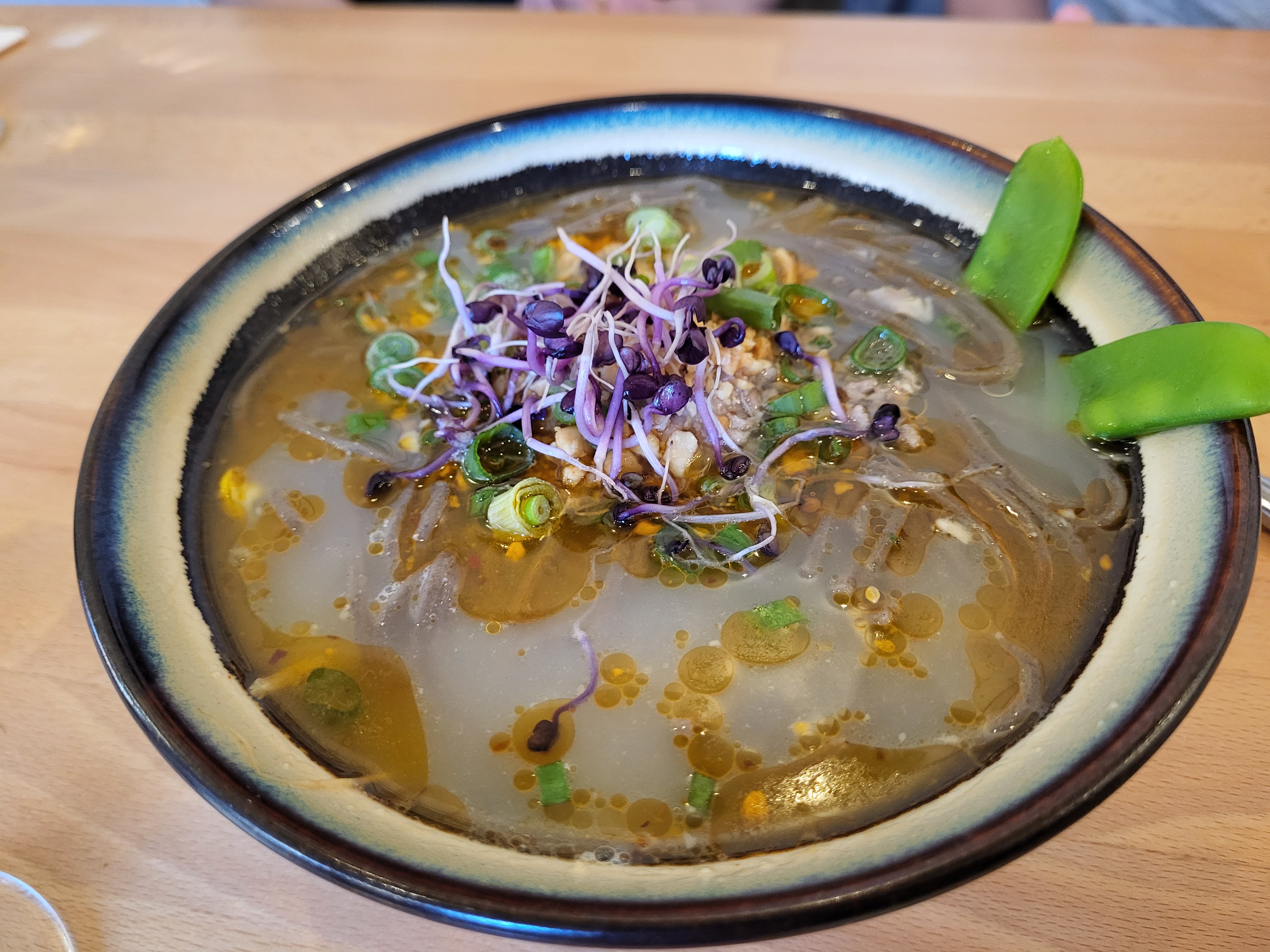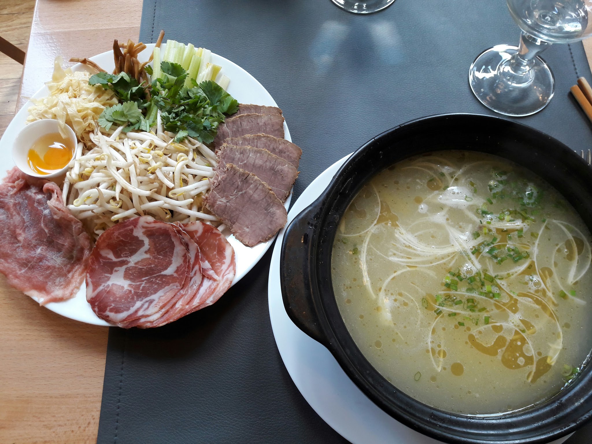 Tout d'abord, le cadre est assez soigné, ce n'est pas comme les restos asiatiques classiques qui misent soit dans le kitsch soit dans le côté cantine. Passé plusieurs fois le midi, le menu midi est d'un excellent rapport Q/P avec 4 ou 5 choix dont mon favori : nouilles dans un bouillon avec viandes diverses et légumes à y plonger. Les saveurs sont présentes et on sent que les produits sont frais. Un petit bémol (mais qui doit moins se remarquer en soirée): certains prix ne sont pas très cohérents (quand on compare les entrées et les plats).