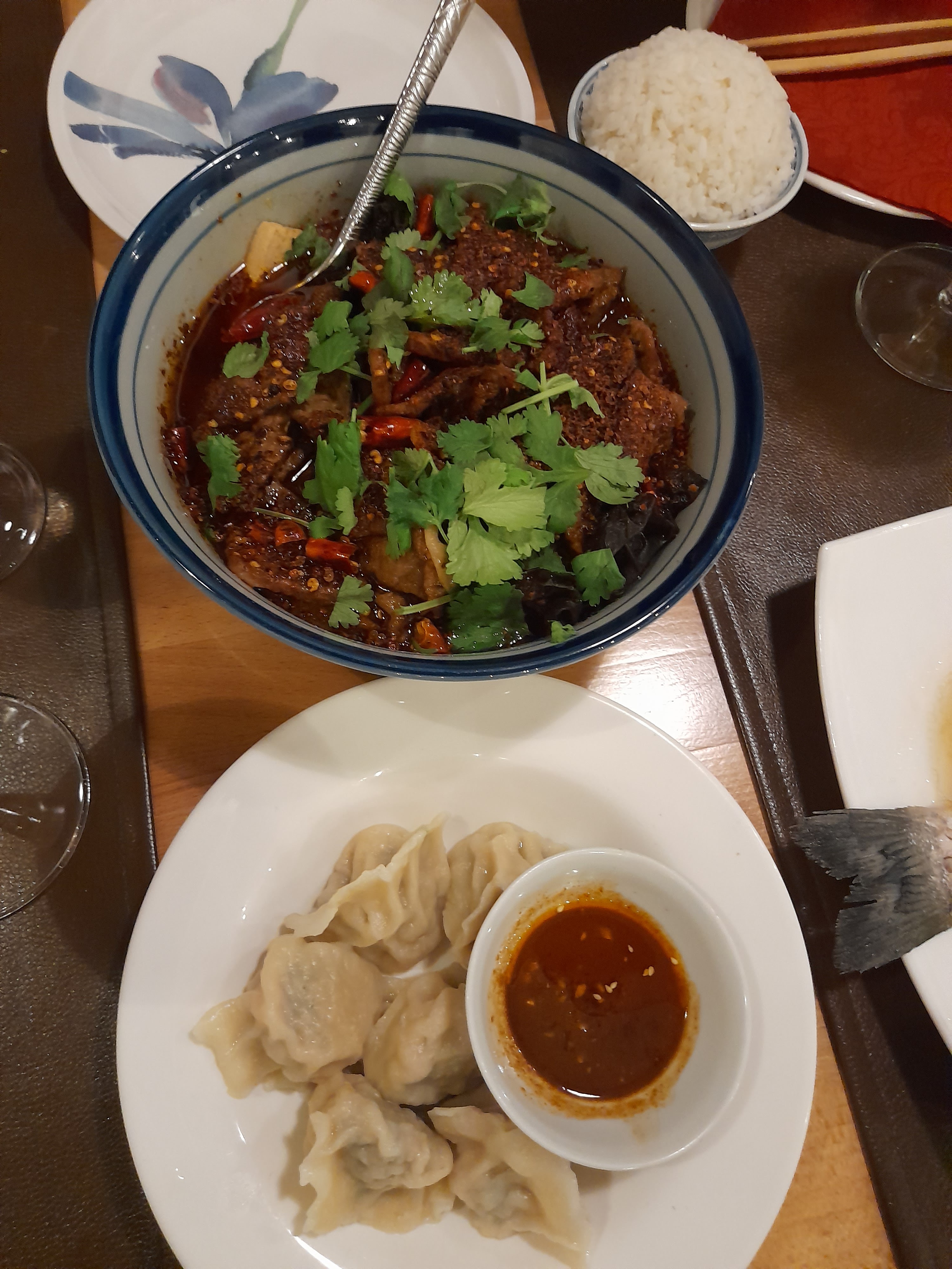 Personnel très agréable et souriant ! Le restaurant est calme et bien décoré. Parlons cuisine maintenant j'ai pris le plat le plus épicé, il était très bon (et très épicé je le déconseille aux personnes qui n'ont pas l'habitude) mais très copieux il faut être a 2 pour envisager ou demander de ramener le reste en doggybag. J'avais pris en accompagnement des nouilles au sarrasin en soupe de Sichuan qui était très bonne.