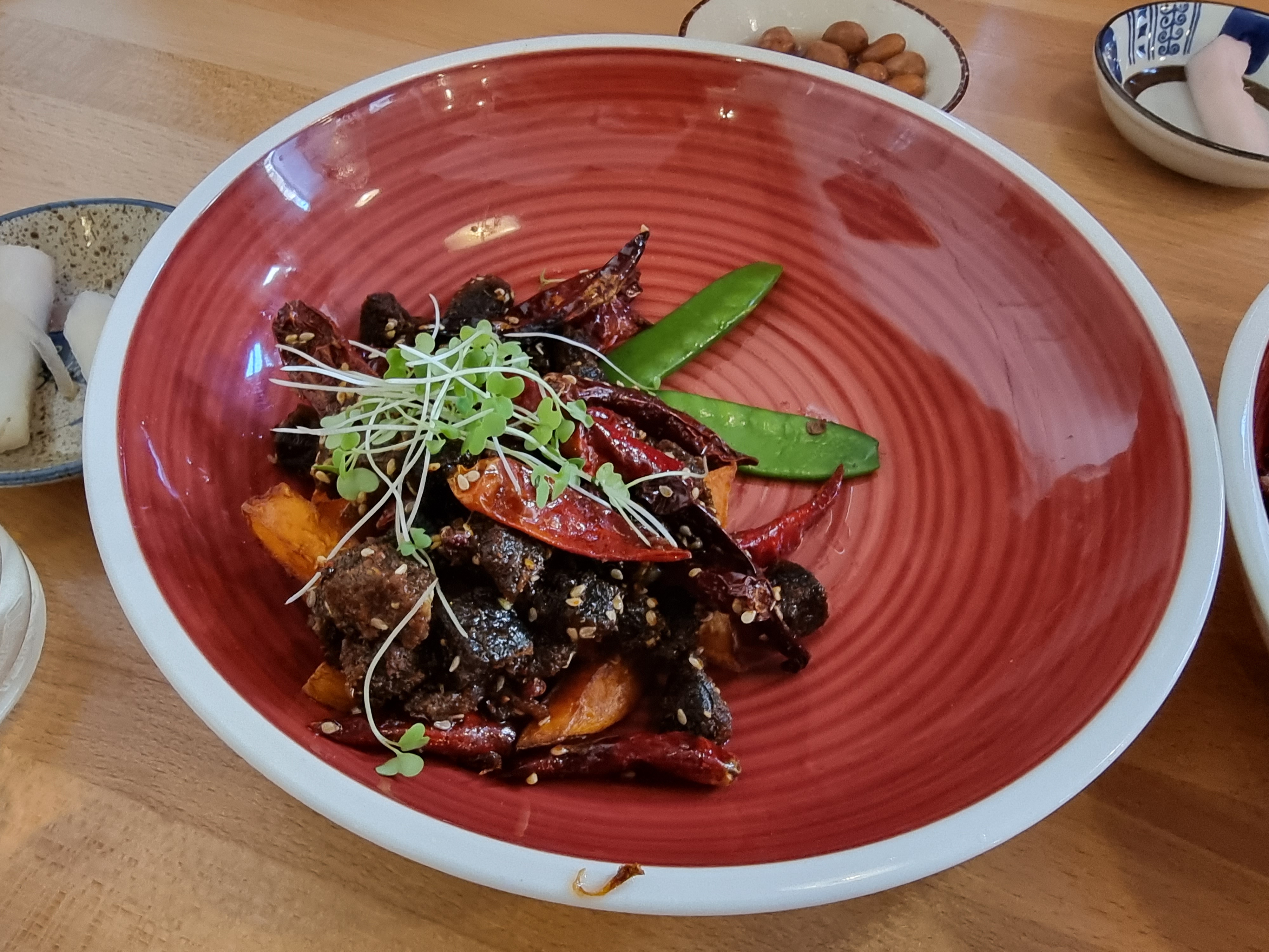 Surprenant, bien exécuté, savoureux, copieux, cadre très sympa. J'adore cette sensation de chaud froid que procure le poivre de Sichuan. Bref, totalement conquis.