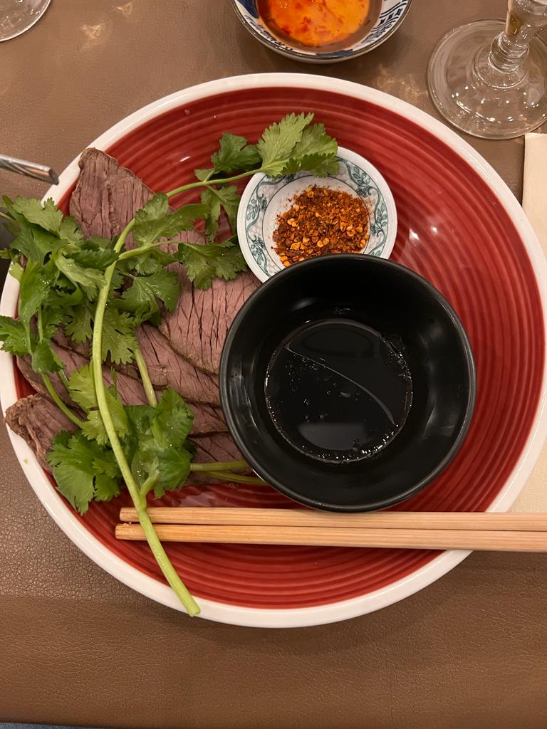 Ce restaurant propose une cuisine gastronomique chinoise pleine de parfums à découvrir: notamment leur piment et leur poivre de Sichuan. Je recommande le bœuf séché en entrée, les coquilles saint Jacques en plat et les raviolis en soupe en accompagnement. Ces plats sont fins et singuliers pour un palais français. Le tout est servi copieusement et pour 38 euros c est raisonnable. La seule fausse note vient du dessert : le mochi (sorte de crème glacée dans une pâte de riz) a une texture gelatineuse et un goût chimique, les autres desserts à la carte n avaient pas l air plus appétissants. Prenez un thé à la place du dessert pour rester sur un repas parfait.