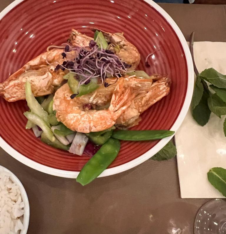 Joli décor, sans cliché. Service ok. Soupe avec raviolis trop gras (raviolis y même très bon), bœuf seche en entre avec sauce bon. Crevettes avec cacahouète et asperge très bon. Bœuf pour le plat pas bon du tout, viande de mauvais qualité et sauce beaucoup trop gras. Carte très inégale du coup.