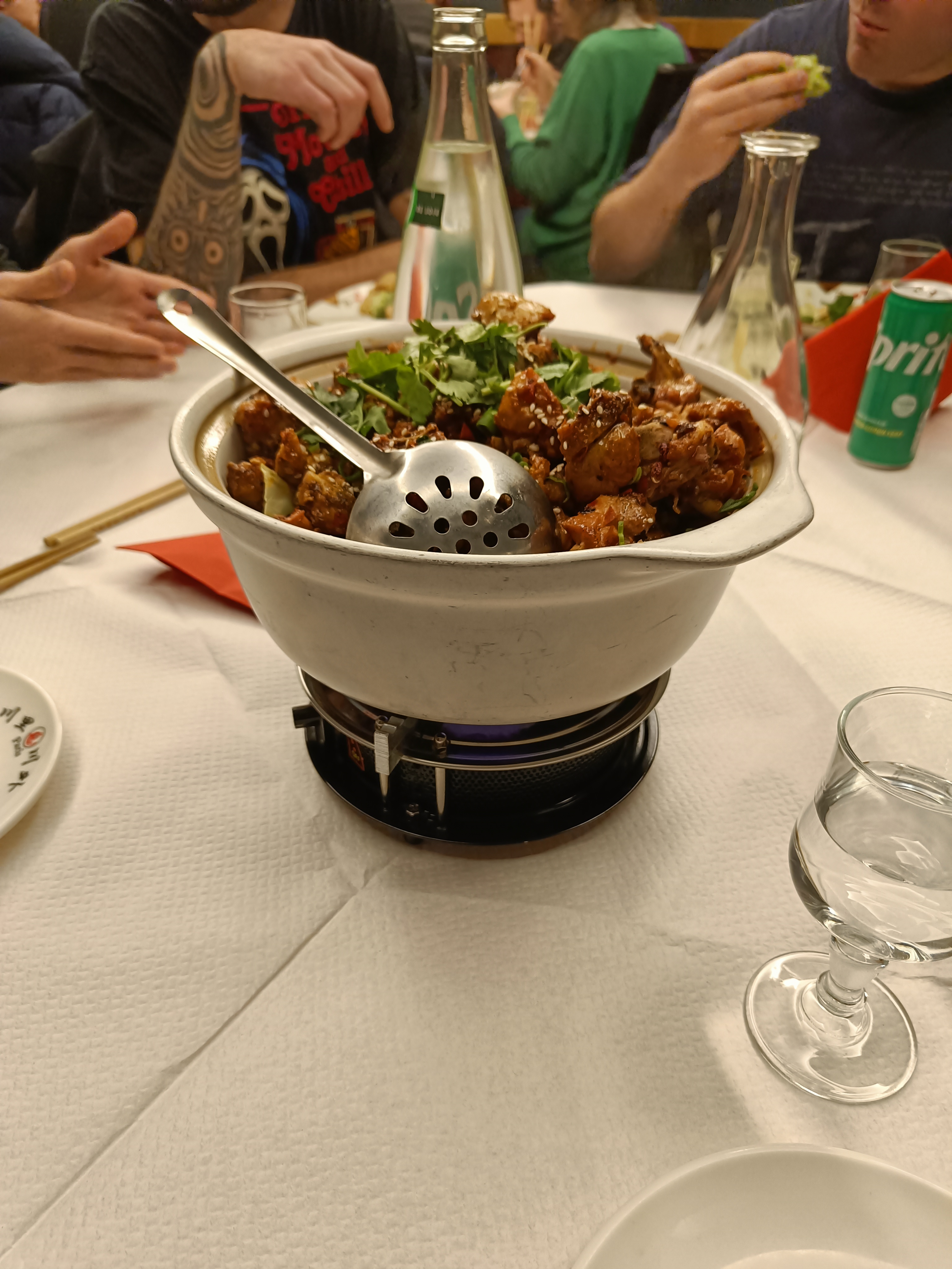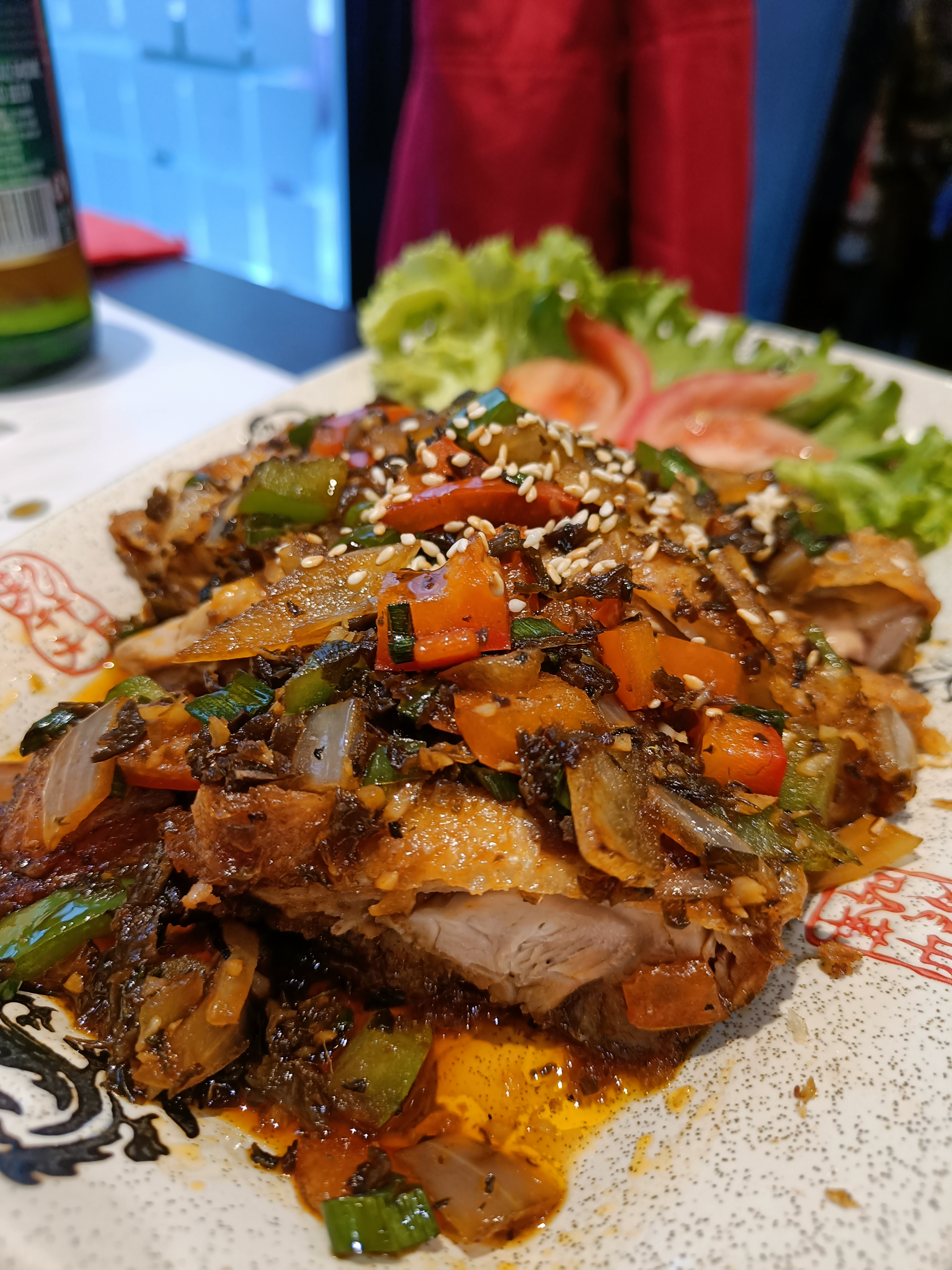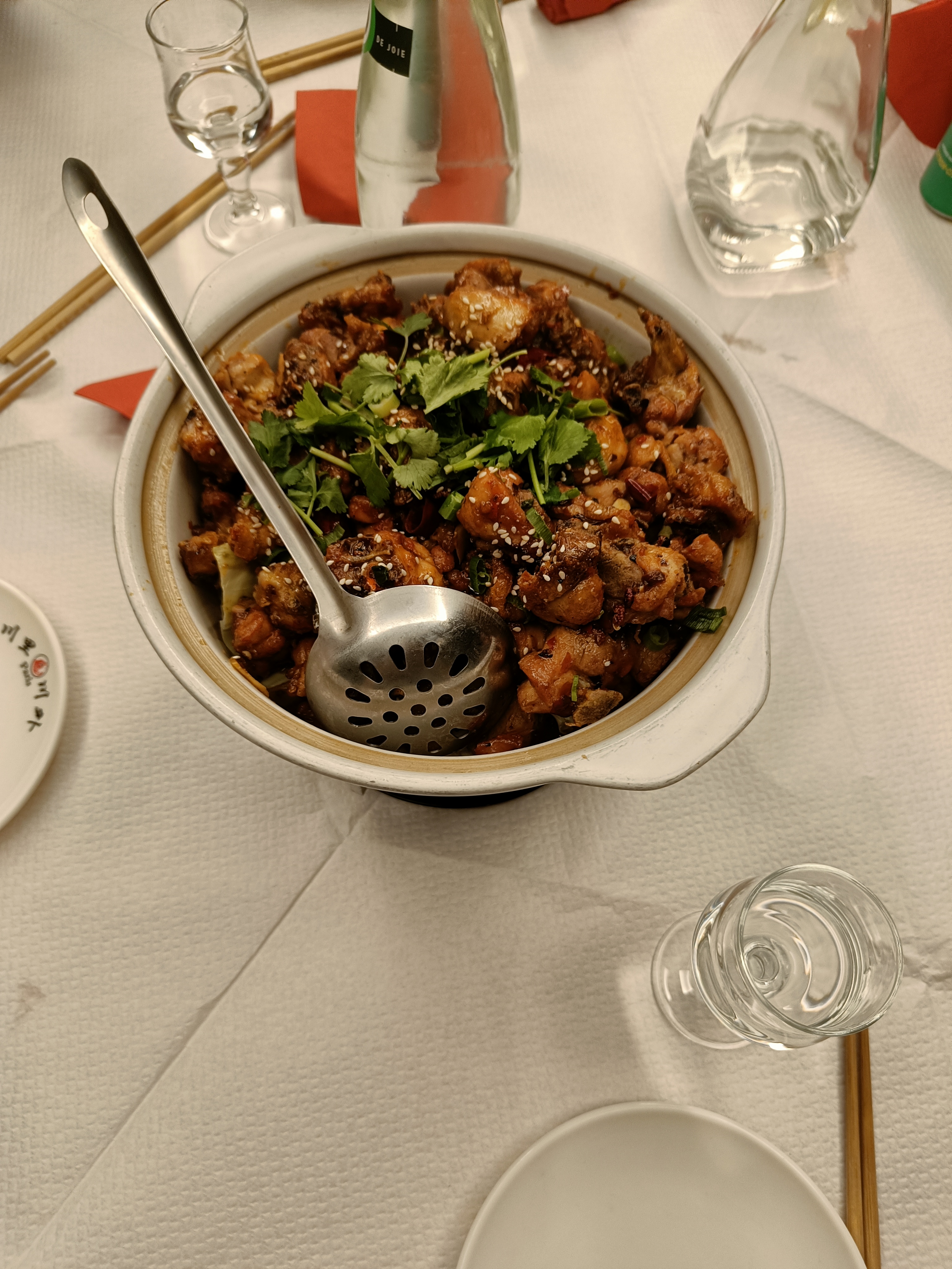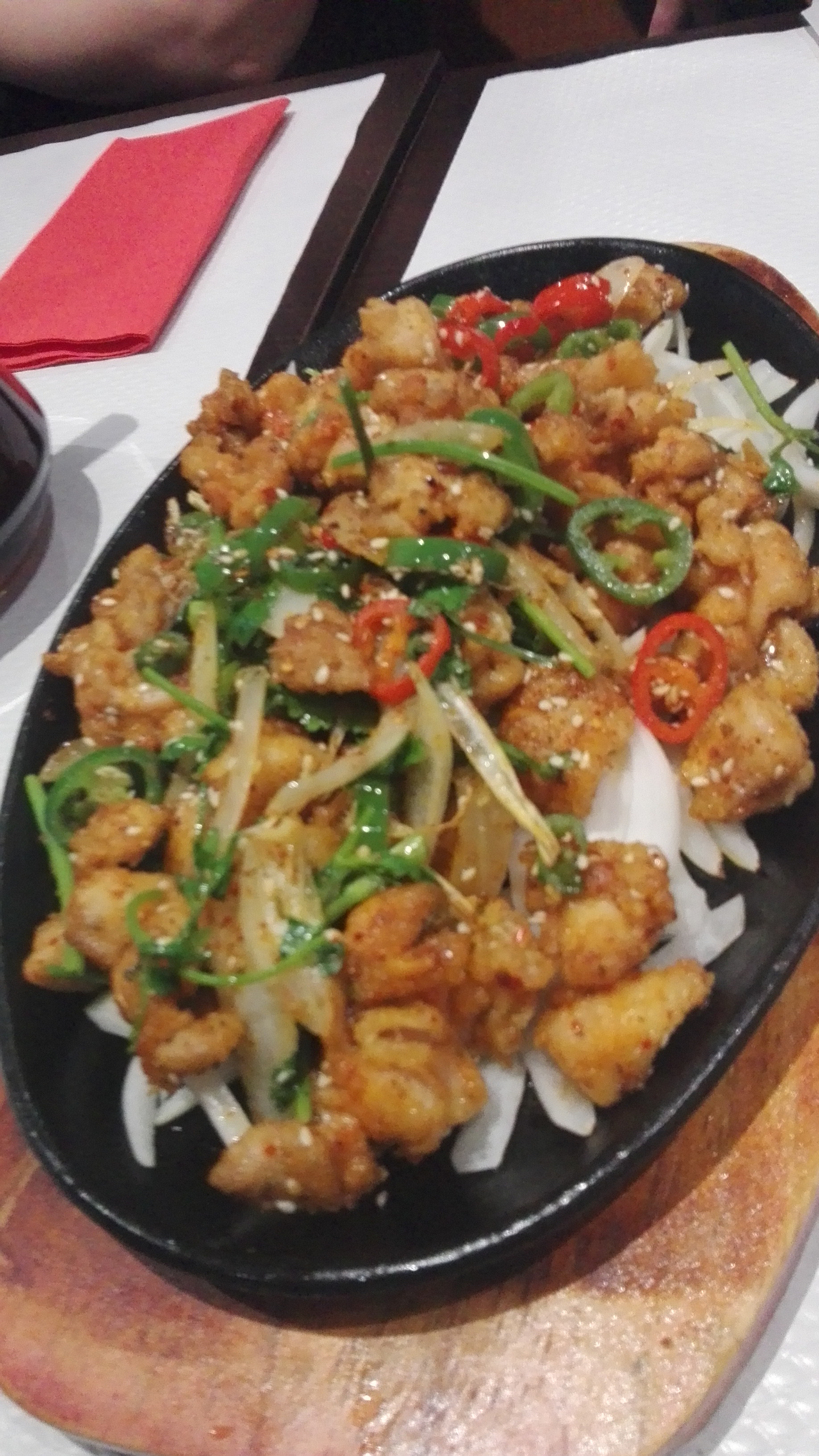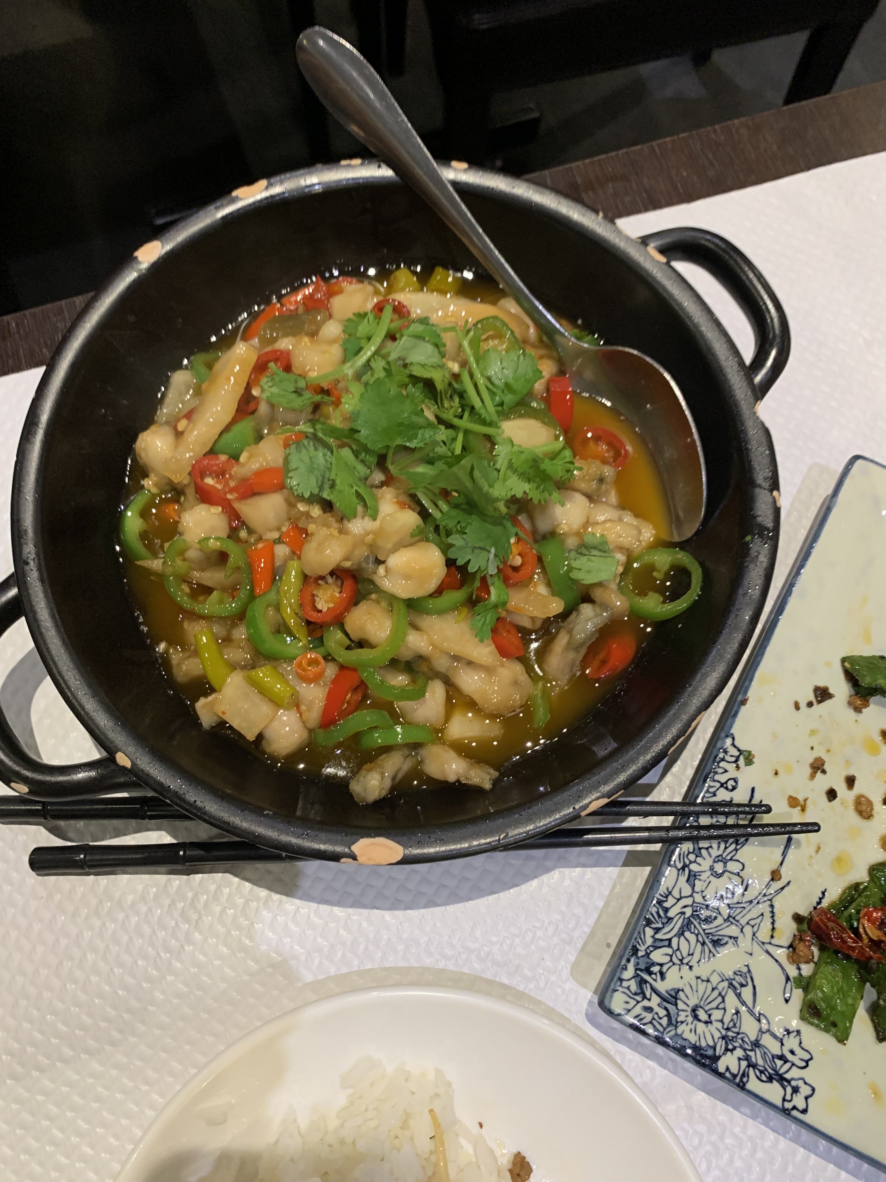 Entrée intéressante (tripes pimentées froides) mais le poulet frit du chef était vraiment trop gras. Je pense y retourner pour goûter d'autres plats.