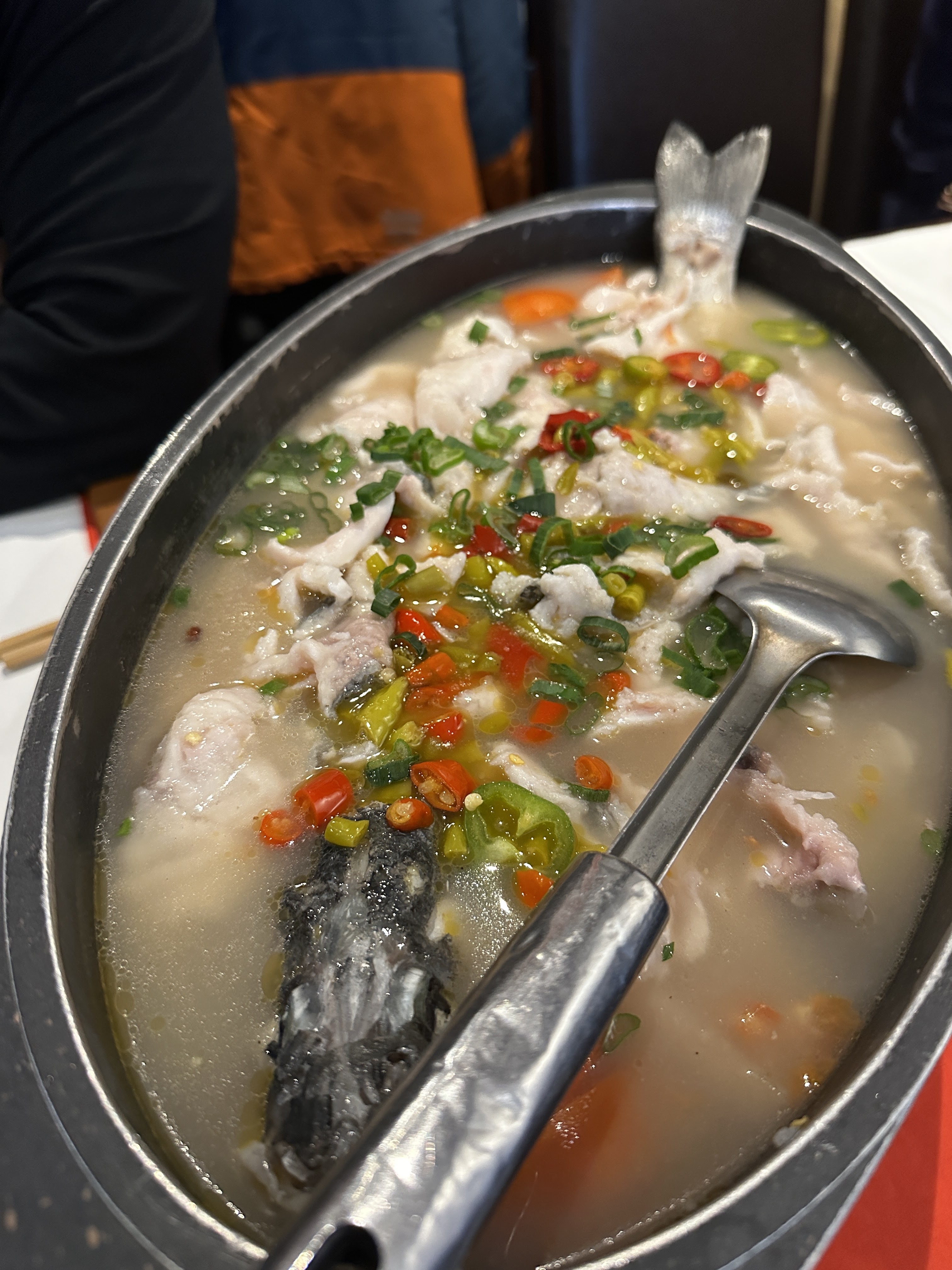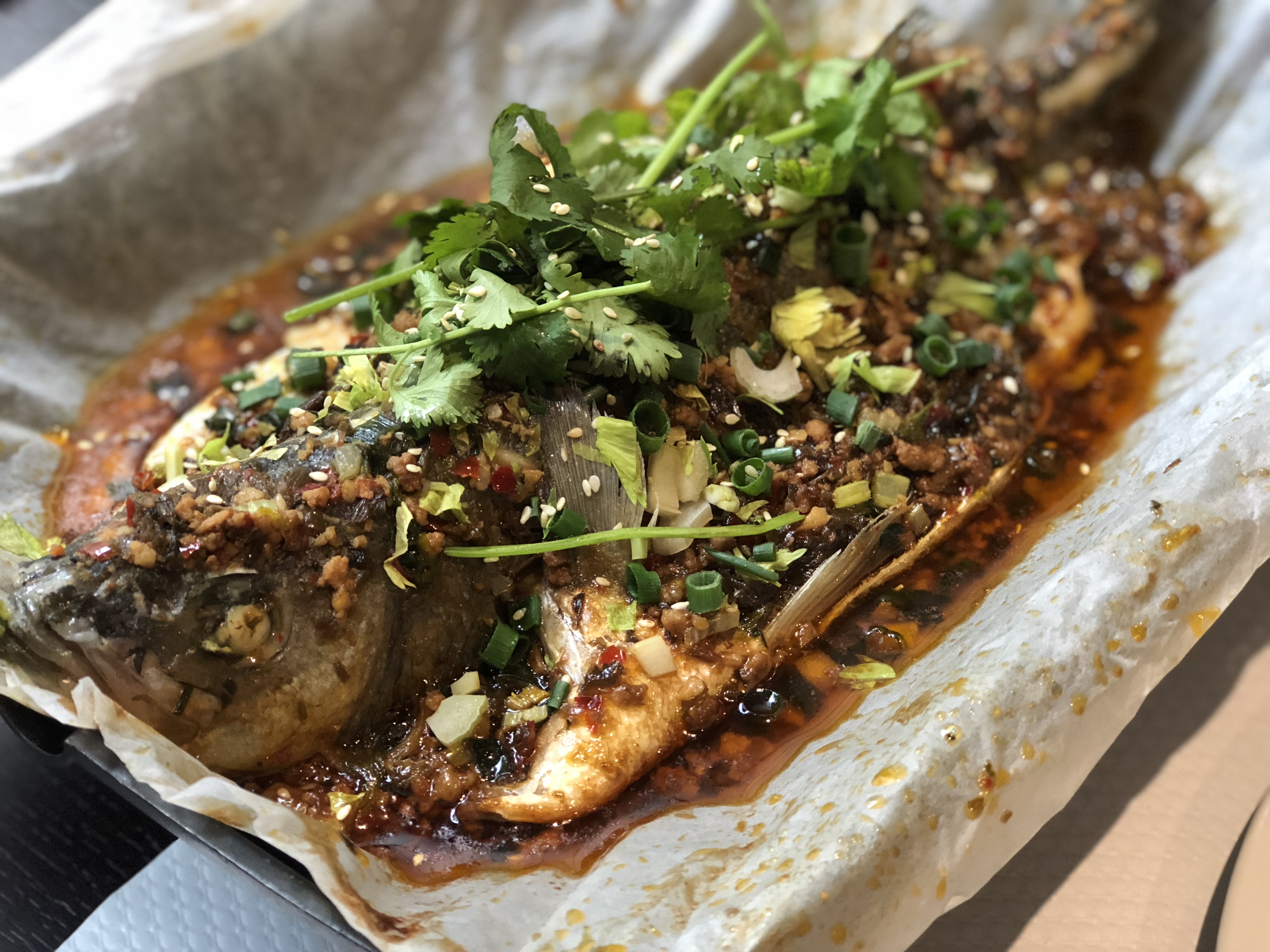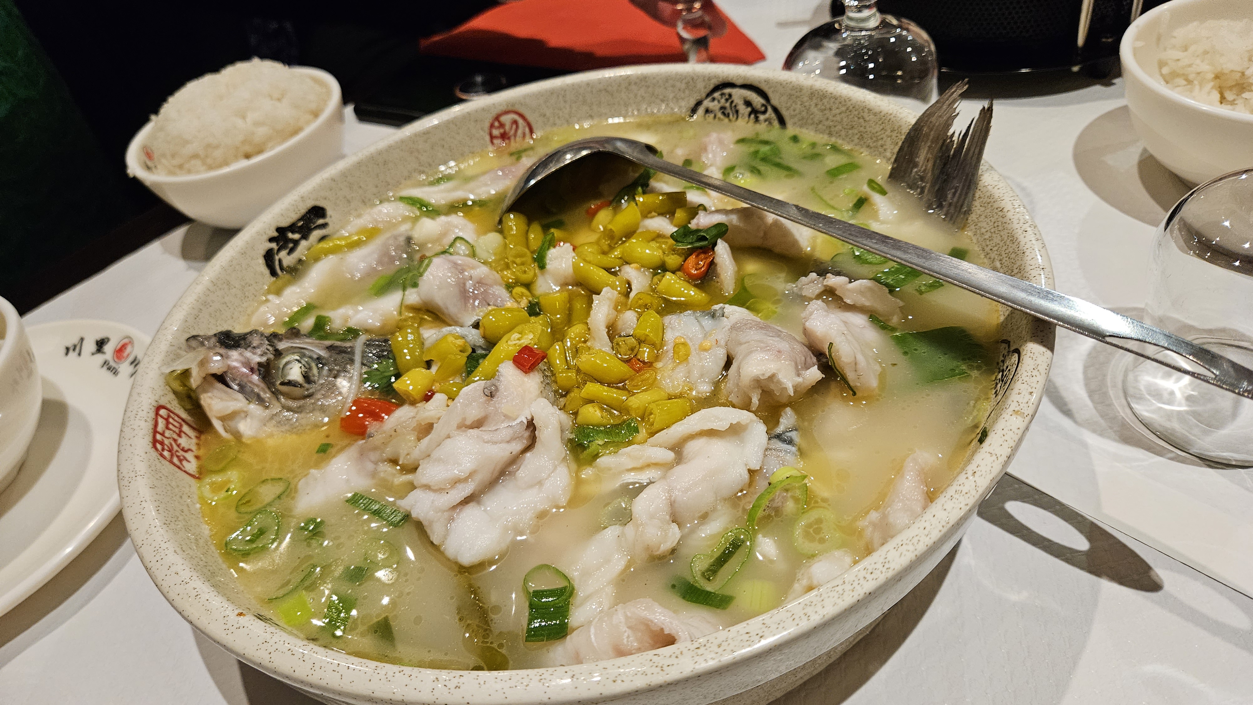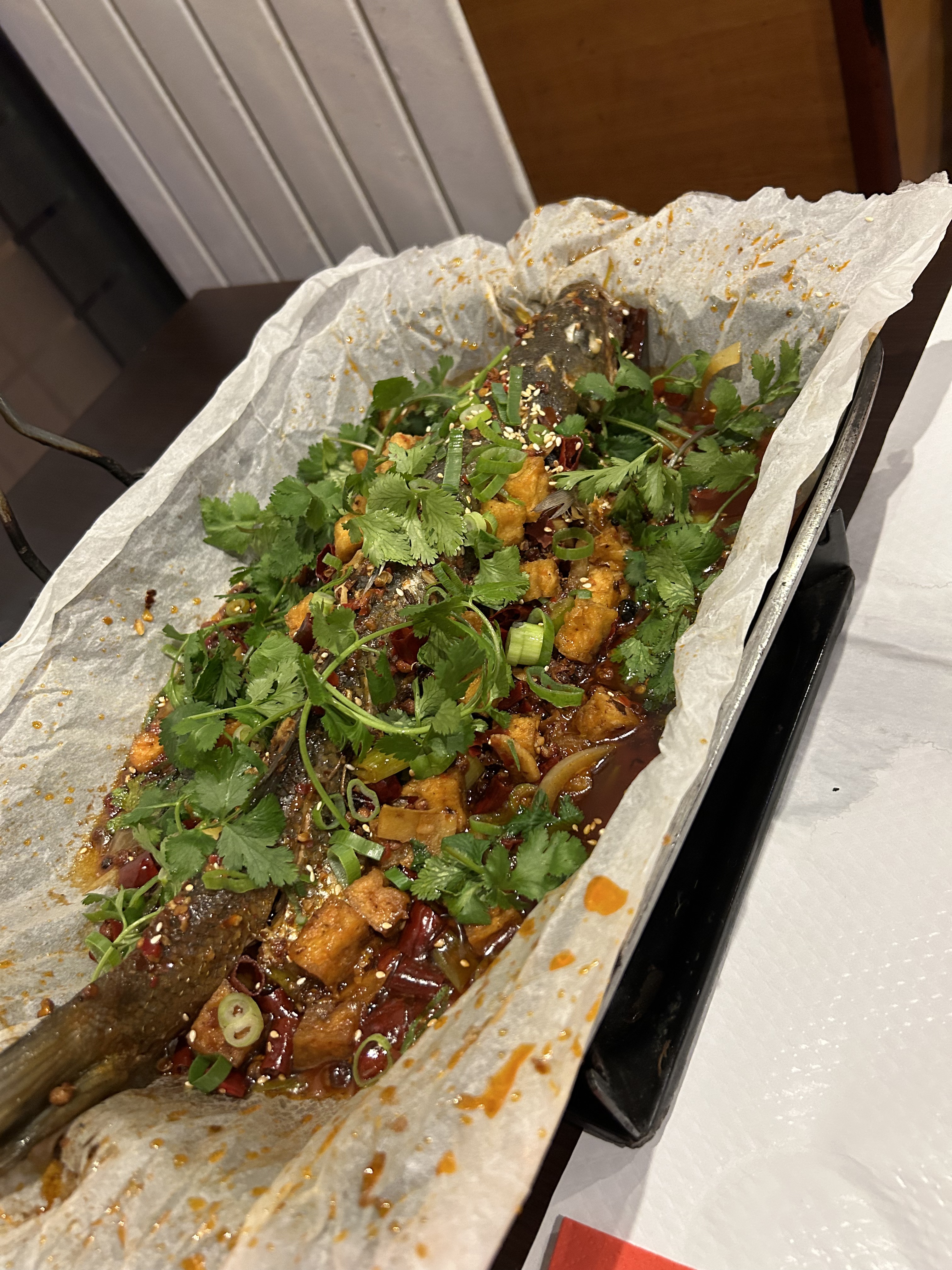 Très bonne cuisine, notamment le poisson spécial sur la photo ci-dessous (d'après un chinois) et le personnel est sympathique. La foule ne ment pas ! Mais attention... Les plats du Sichuan sont vraiment épicés au goût européen.