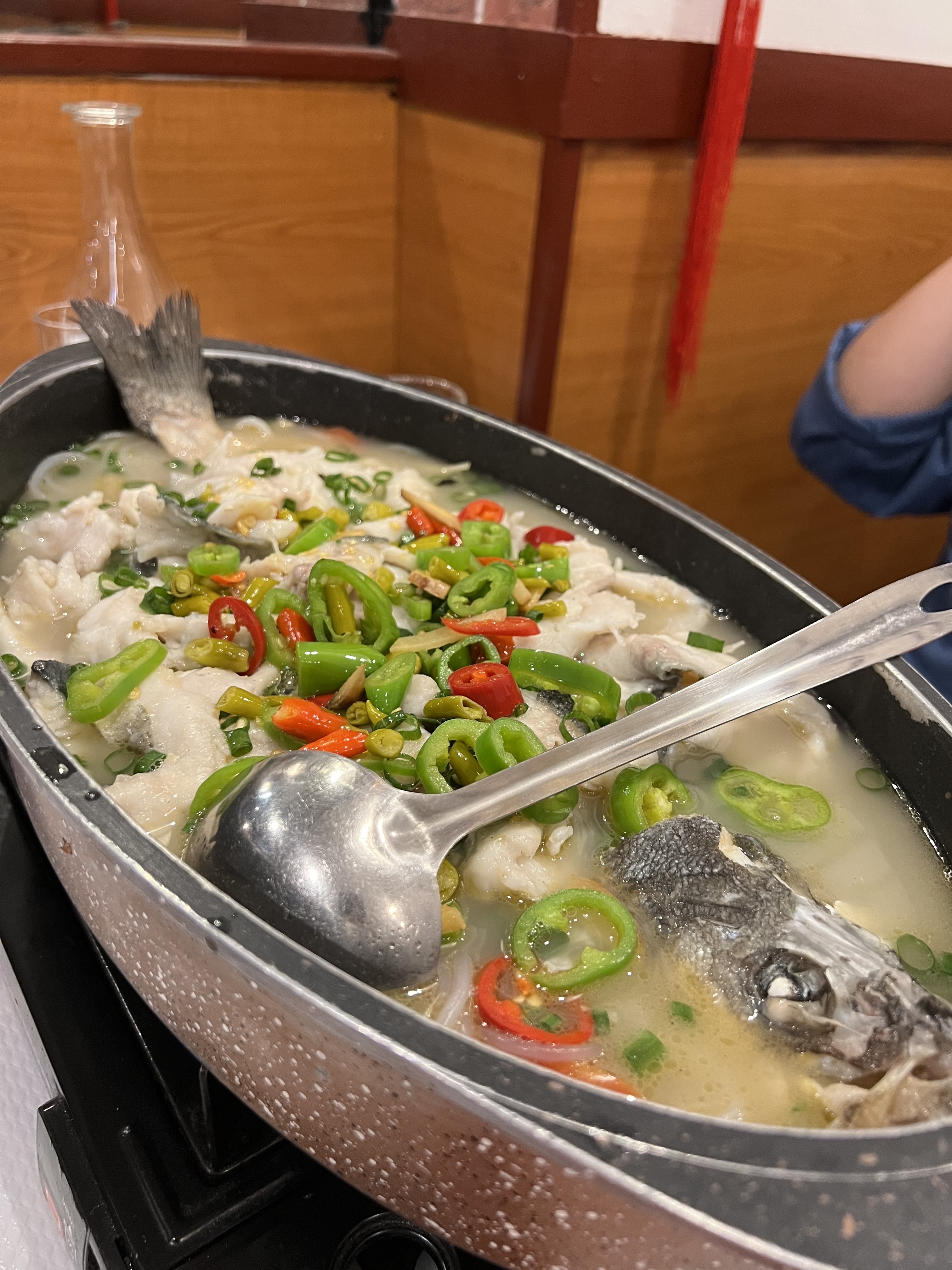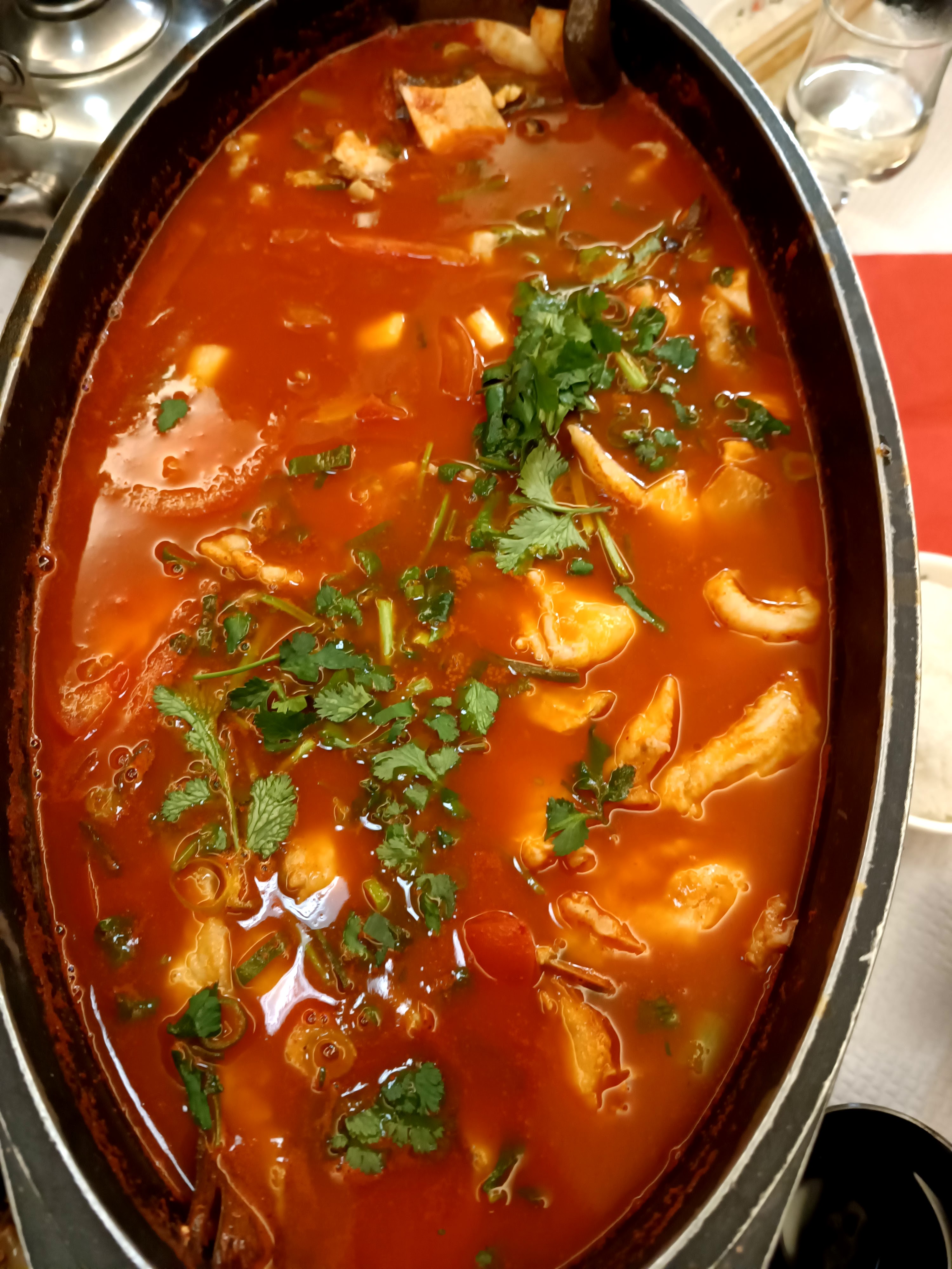 Excellente soupe avec poisson entier. Plat typique et très épicé. Il est préférable de réserver les weekends