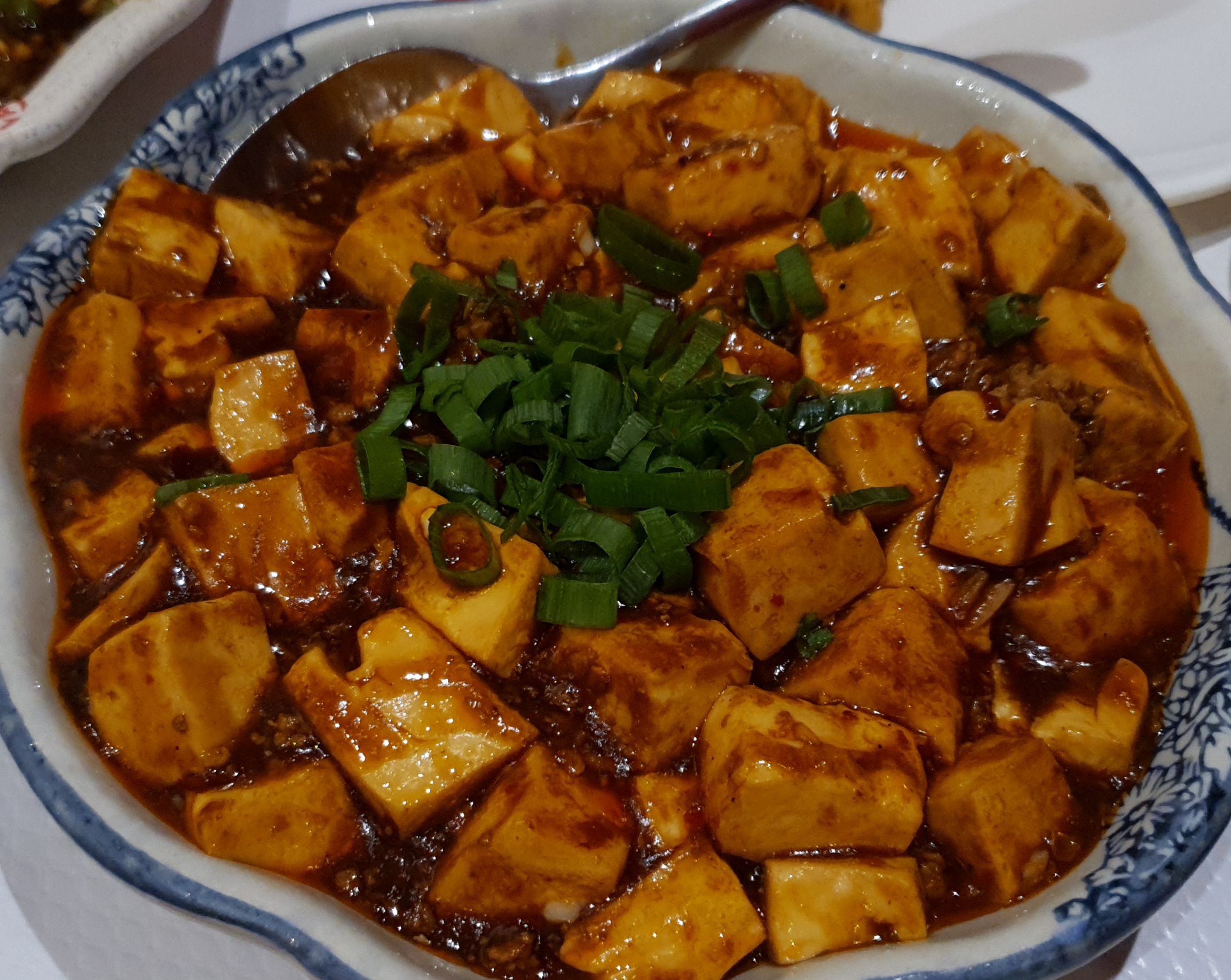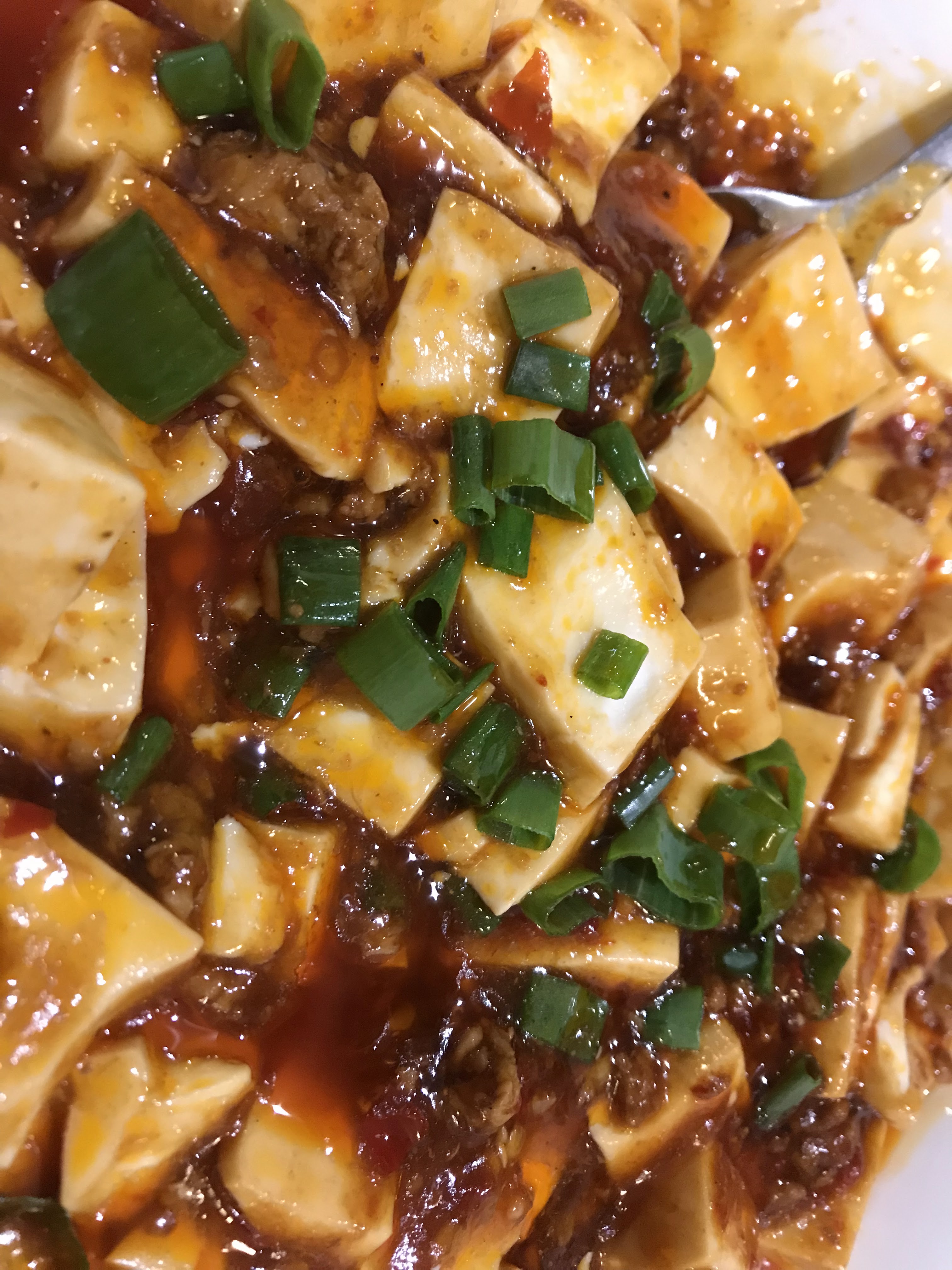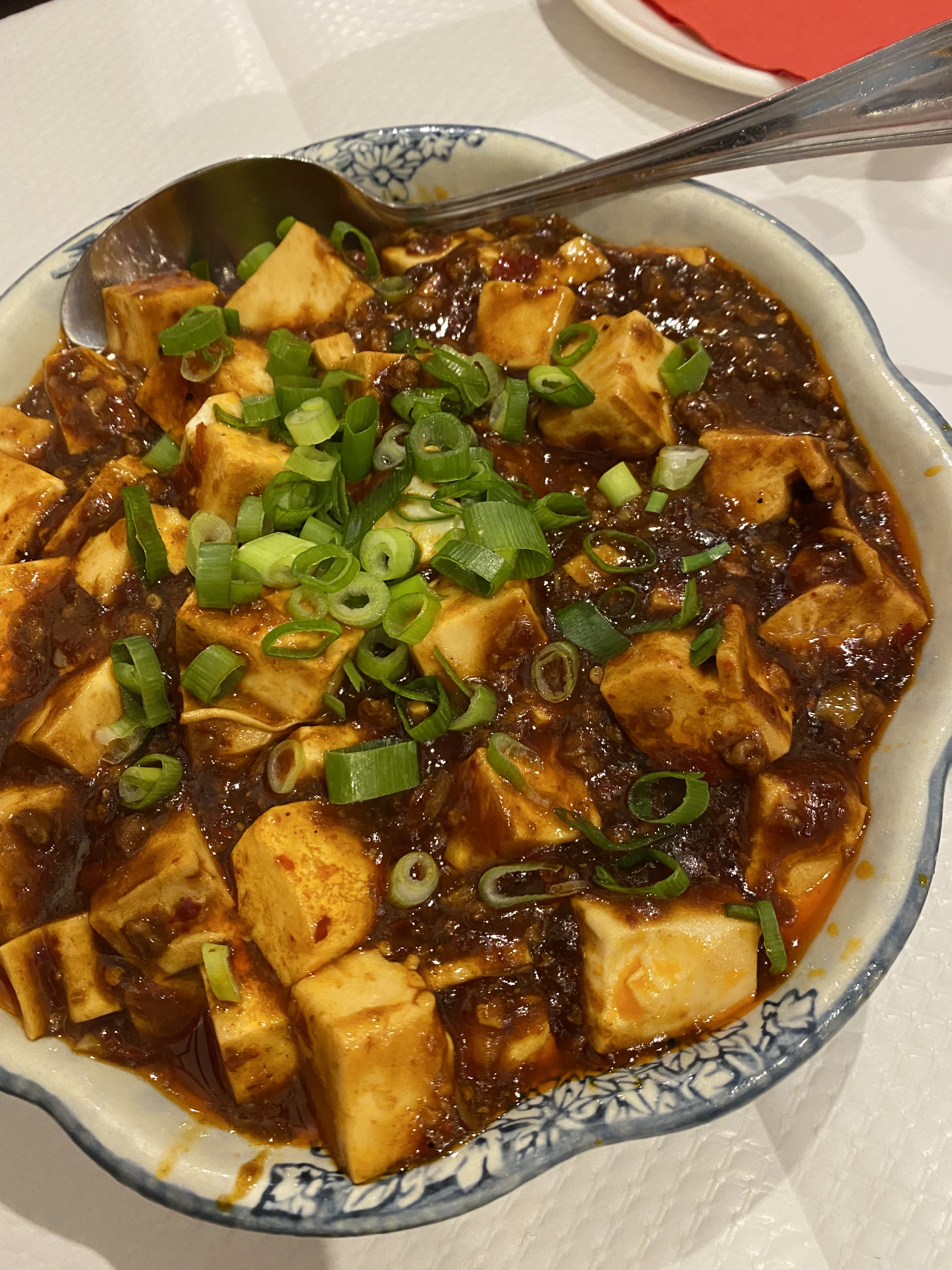 en tant qu'amateur de cuisine épicée, cela n'a vraiment pas déçu même si le poulet contenait un peu trop de poivre de Sichuan et que le tofu était tellement bon