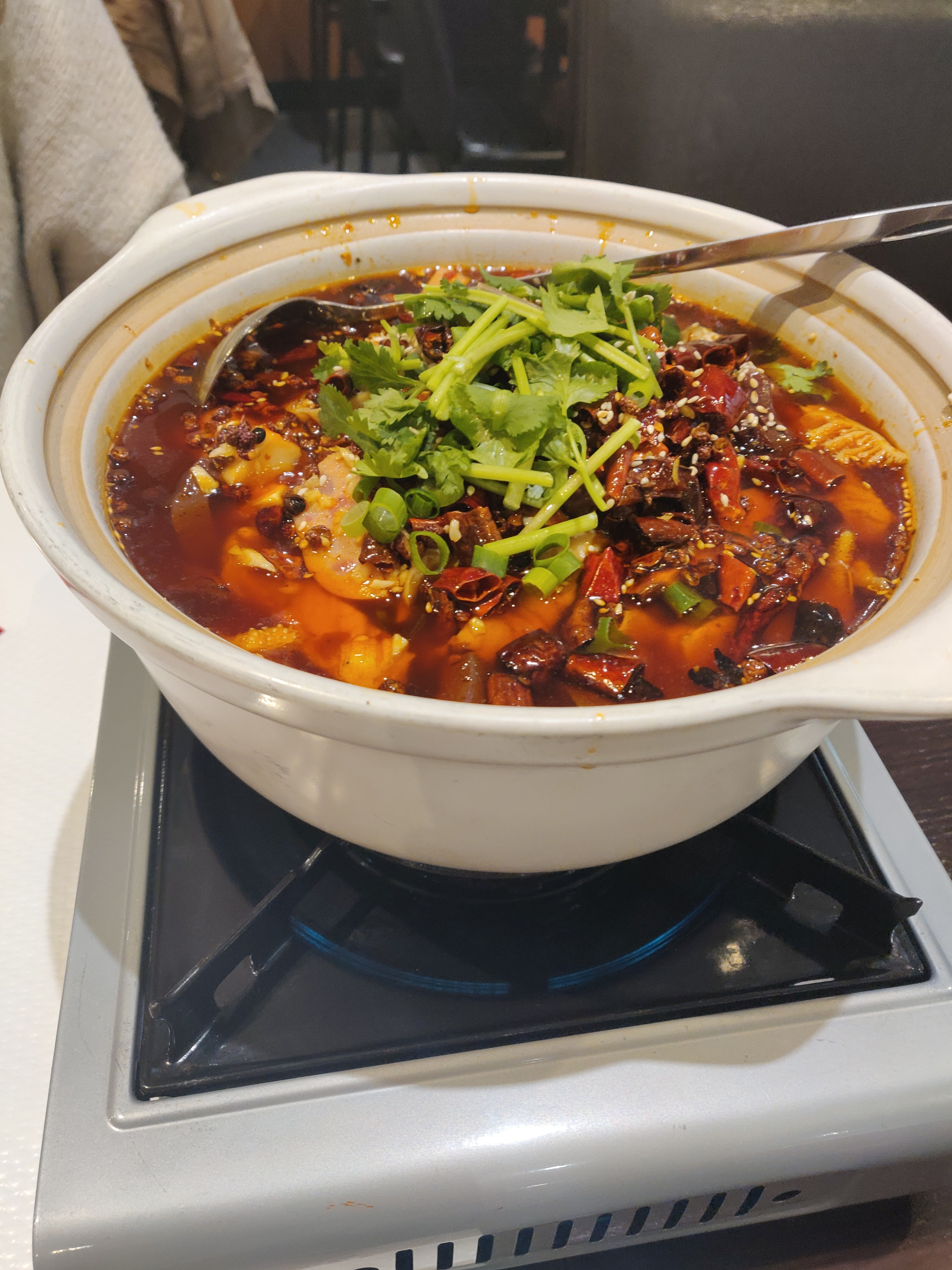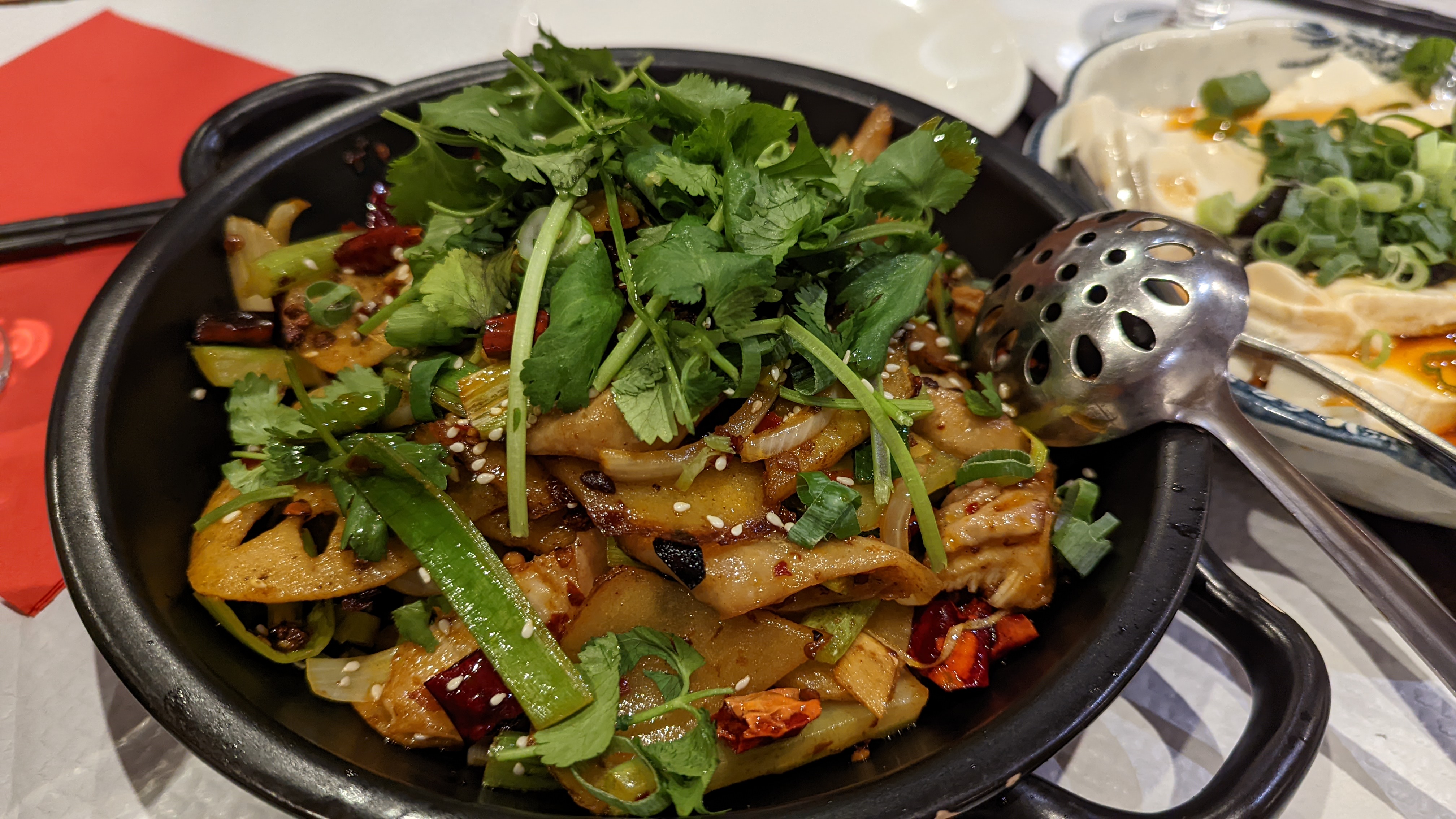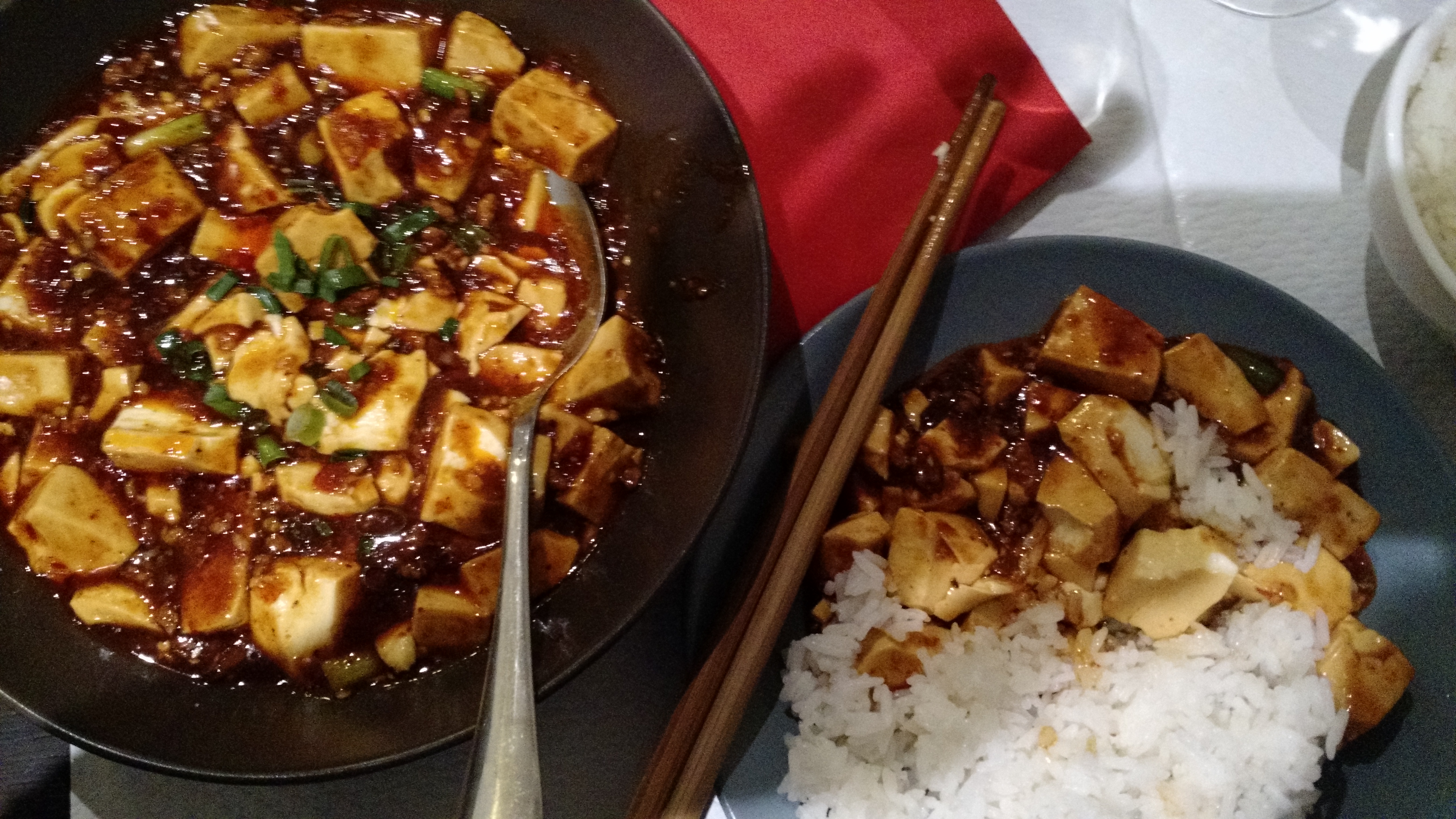 en tant qu'amateur de cuisine épicée, cela n'a vraiment pas déçu même si le poulet contenait un peu trop de poivre de Sichuan et que le tofu était tellement bon