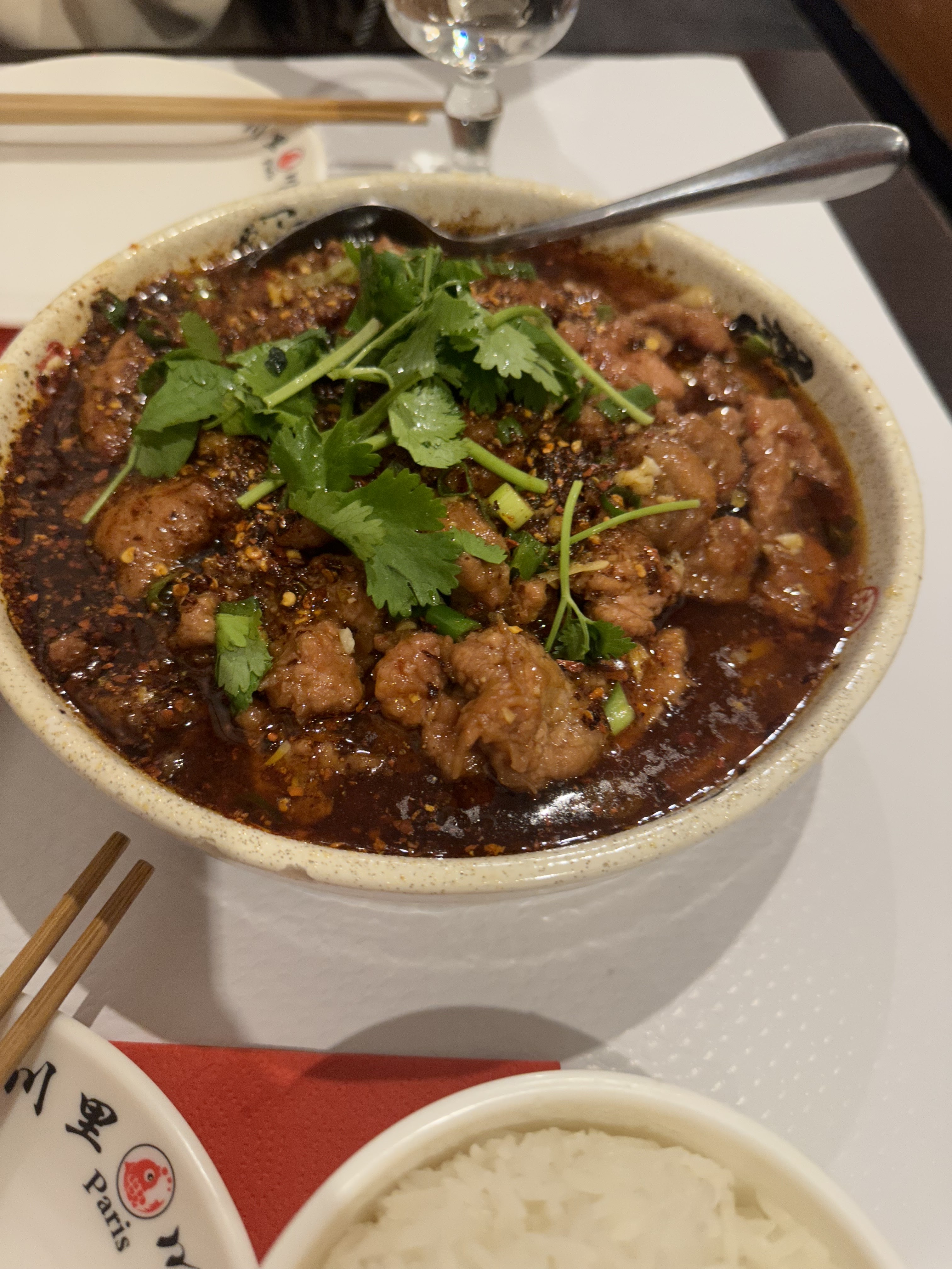 Comme un chinois qui vient de Sichuan, c'est exactement ce que on mange chez nous. Vraiment authentique et le prix est très correcte. J'y vais quand je me sens nostalgie. 巴黎性价比最高的川菜馆吧,片片鱼和水煮牛肉的肉不要太多!四川人表示很满意。