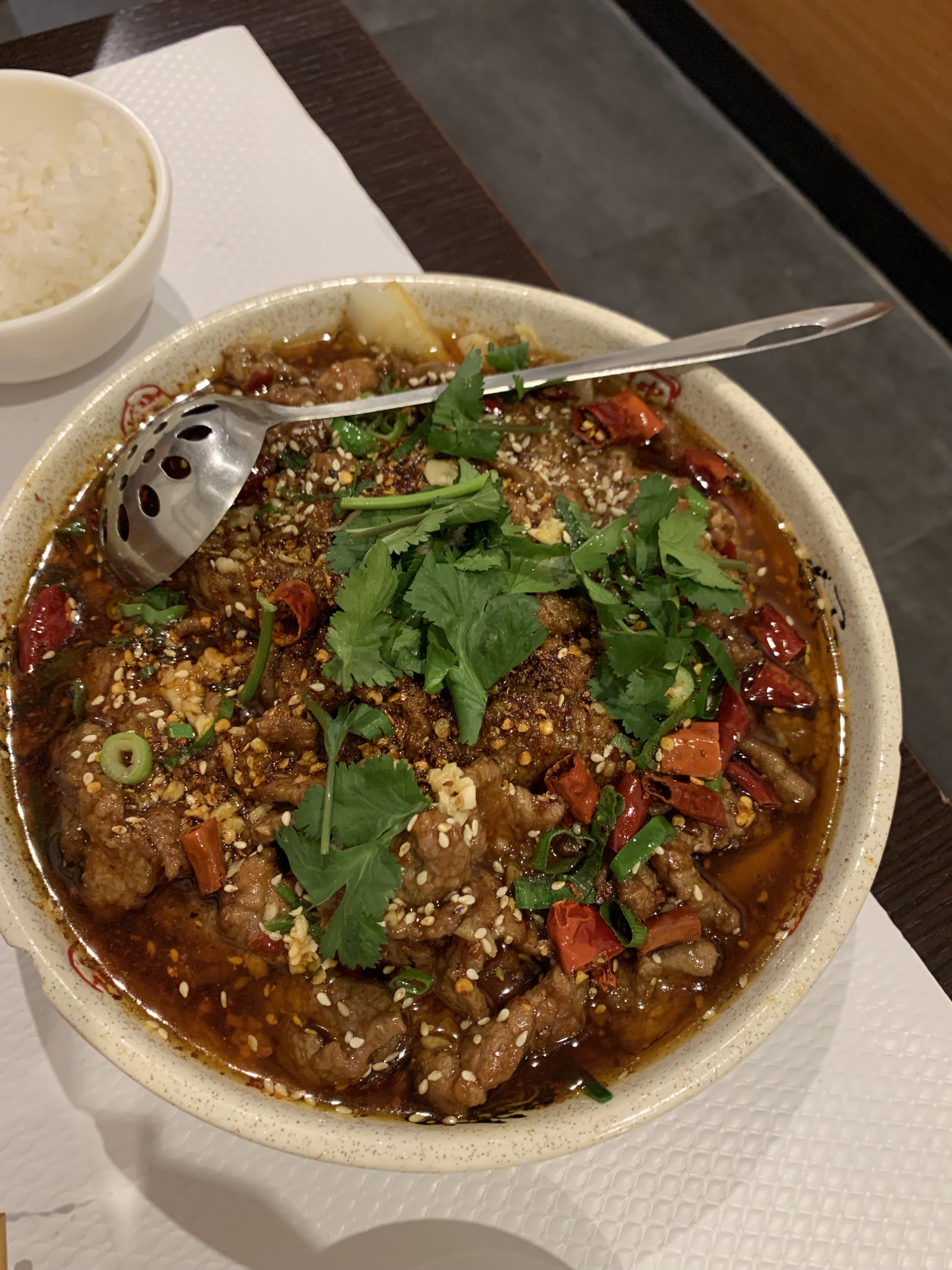 J'avais envie de nourriture sichuanaise et je suis entré. J'ai eu un th额水煮牛肉 qui était l'un des meilleurs que j'ai eu dans le monde. Portion importante, beaucoup de viande, pas grasse... Au plaisir d'y retourner