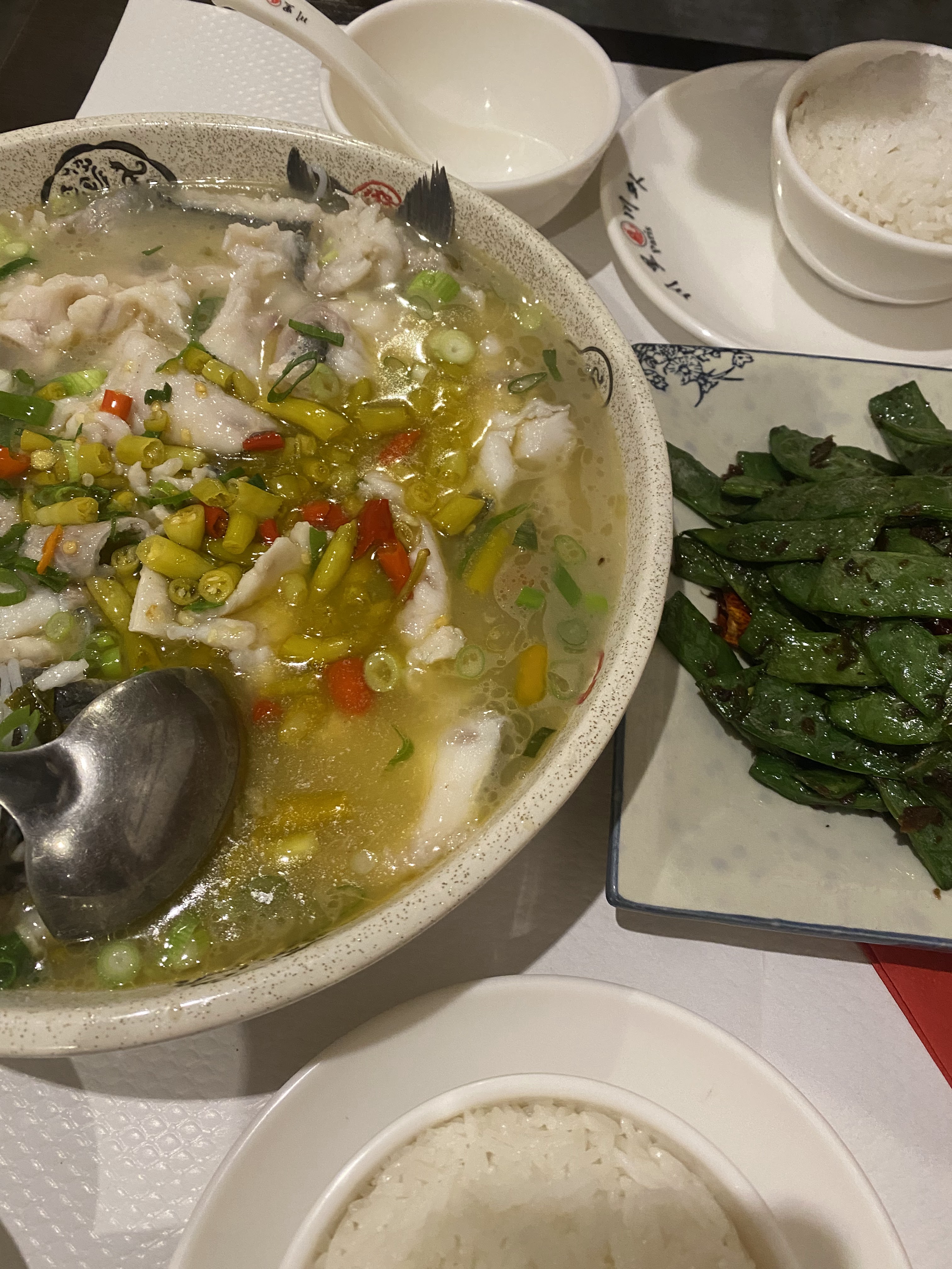 Je mange beaucoup de sichuan et c'est le meilleur que j'ai mangé de ma vie. un bon équilibre entre épicé et engourdissant et tellement délicieux. sachez que le poisson est livré avec des os entiers et tout sauf si bon ! essayez également le bœuf épicé et les haricots. le prix et le service étaient également excellents!