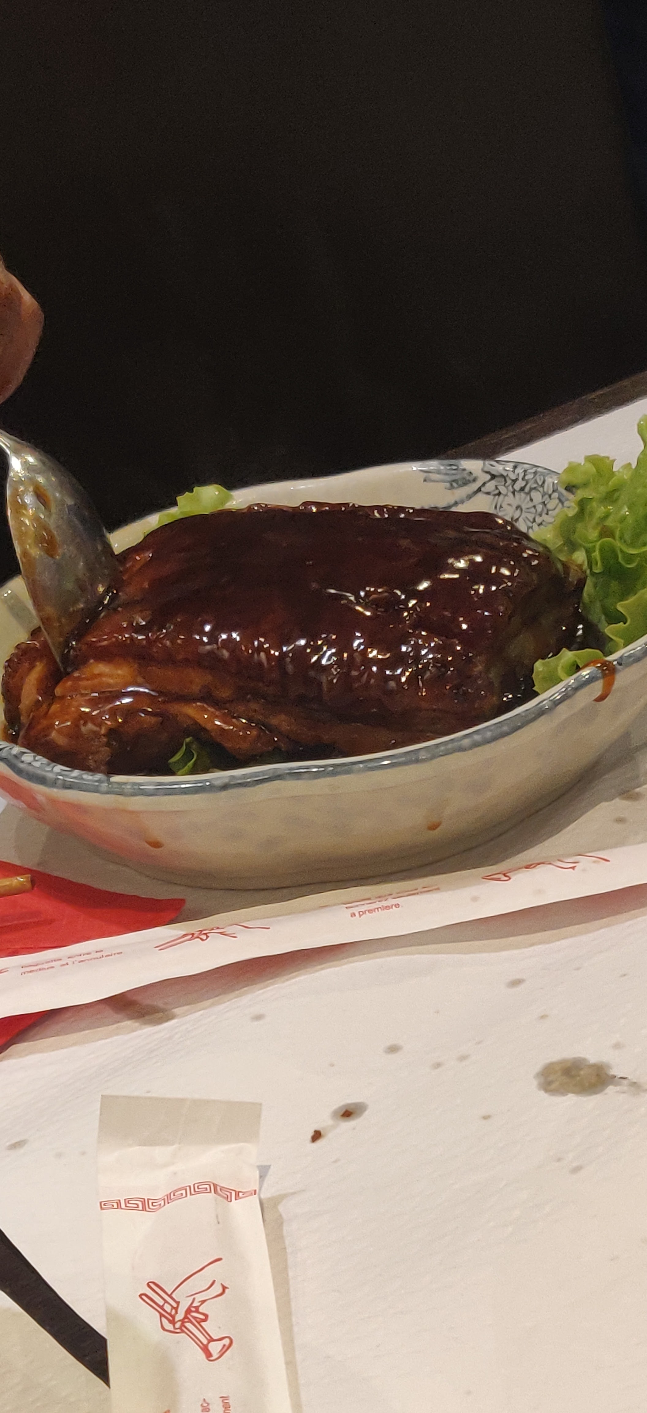 La cuisine était bonne mais j'ai envie de dire que c'est la base d'un restaurant et que c'est sur les autres aspects qu'il faut se démarquer. Au début je me pensais juste méchante à vouloir mettre un mauvais avis car ce lieu n'as rien d'exceptionnel (à part un chouette logo) mais j'ai remarqué le manque de professionnalisme du personnel à la fin. Je demande à emporter mes plats car maintenant dans la loi c'est obligatoire si le client demande et là surprise oui vous pouvez, c'est payant. Premier restaurant qui me fait le coup, donc on leurs dit qu'on en veut tout de même un car de base ça part d'un bon sentiment de ne pas vouloir gâcher la nourriture, et là ils nous jette la boîte sur la table sans même un regard pour nous laisser mettre notre plat dedans :') Absolument TOUT les restaurant que j'ai fait m'ont préparé ma petite boîte gratuite avec toute la sympathie du monde et c'est la première fois que j'ai une si mauvaise expérience. Un conseil : si vous voulez bien manger allez ici, si vous voulez être bien servi aussi aller ailleurs. Je suis sûr à 100% qu'il y a de meilleure restaurant chinois avec la politesse qui va avec !