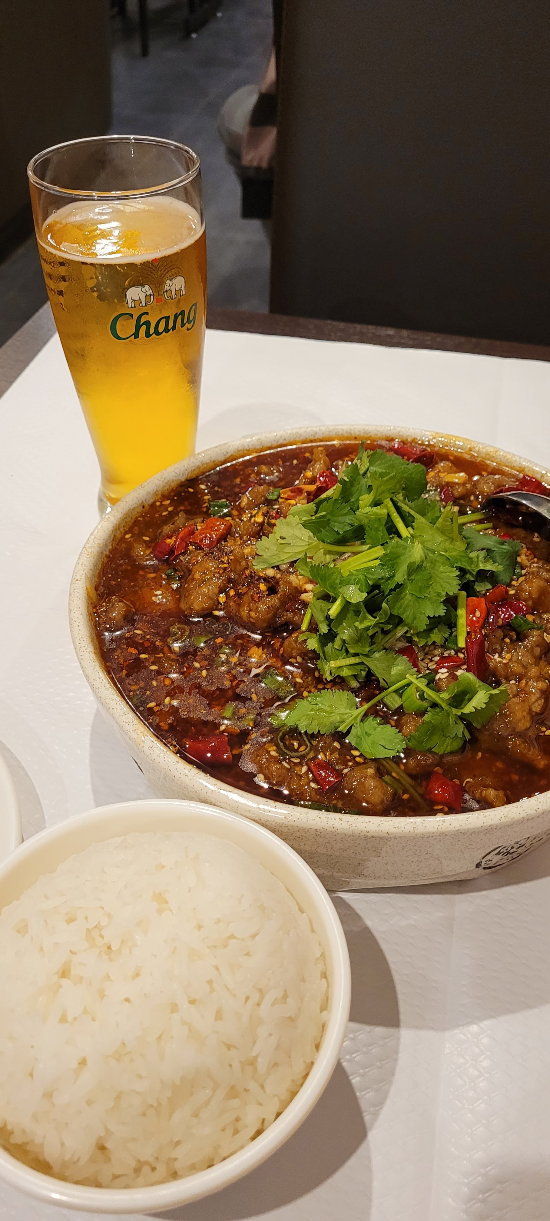 On y était à 2 le 09/07/2020, vers 19h00. Il est mon restaurant de cuisine du sichuan préféré a Paris, j'y suis allé plusieurs fois. Les plats sont toujours très bons, il y a beaucoup de variété. La cuisine est plutôt authentique (à sentir les amis chinois et mes papilles qui adorent la cuisine du Sichuan), y compris le niveau de piment (si on le souhaite). Portions plutôt généreuses, avant le covid il y avait souvent des options du jours (écrites en chinois).