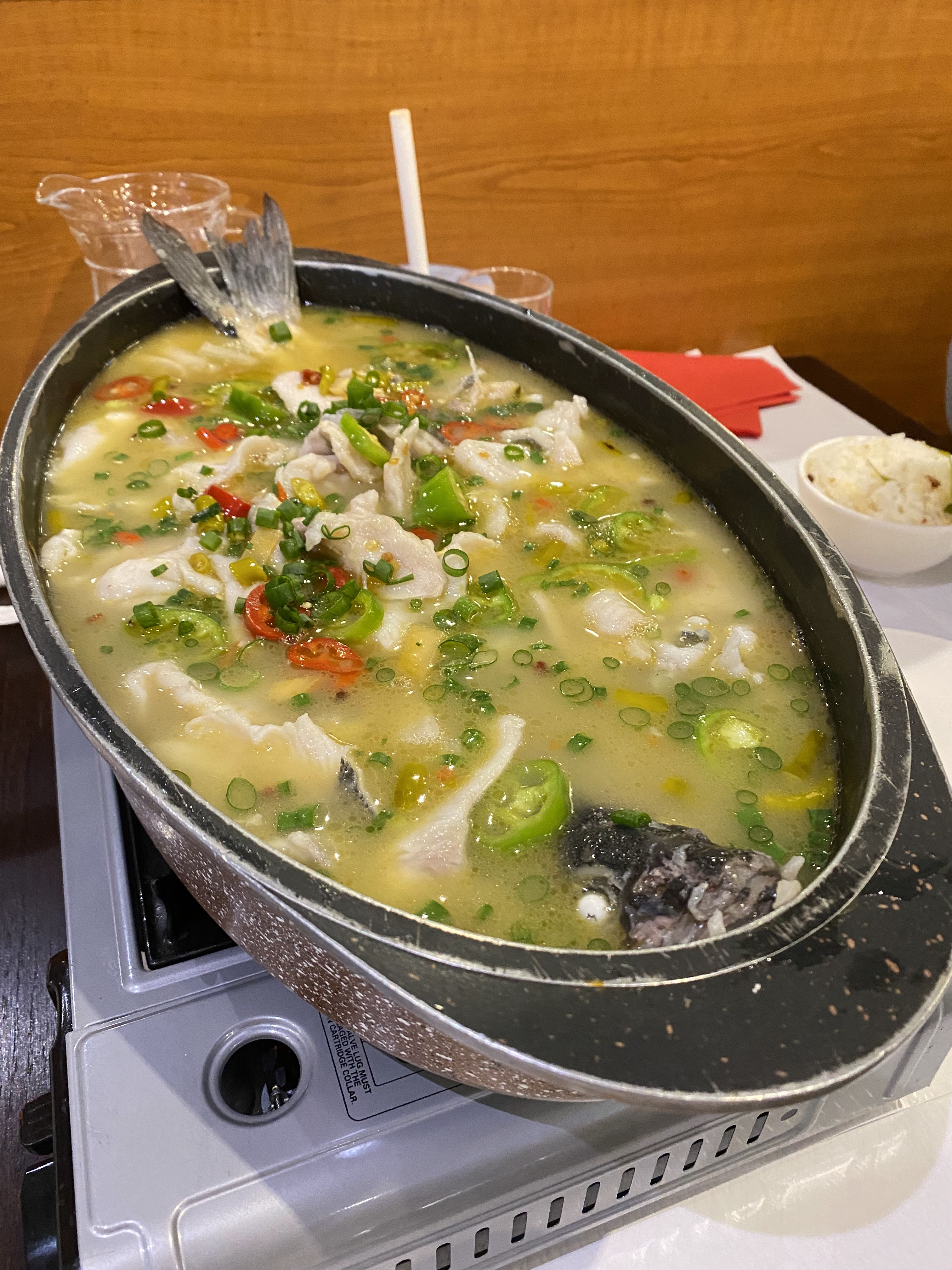 Restaurant situé dans le centre de paris. Nous étions venus pour le poisson qui est une spécialité de la maison, nous avons bien aimé le bouillon qui était bien assaisonné mais nous avions pas trop apprécié l’arrière goût du poisson qui nous semblait pas hyper frais, ce qui est dommage. Cependant nous avons vraiment aimé les légumes notamment le haricots aplatis qui sont très parfumés.