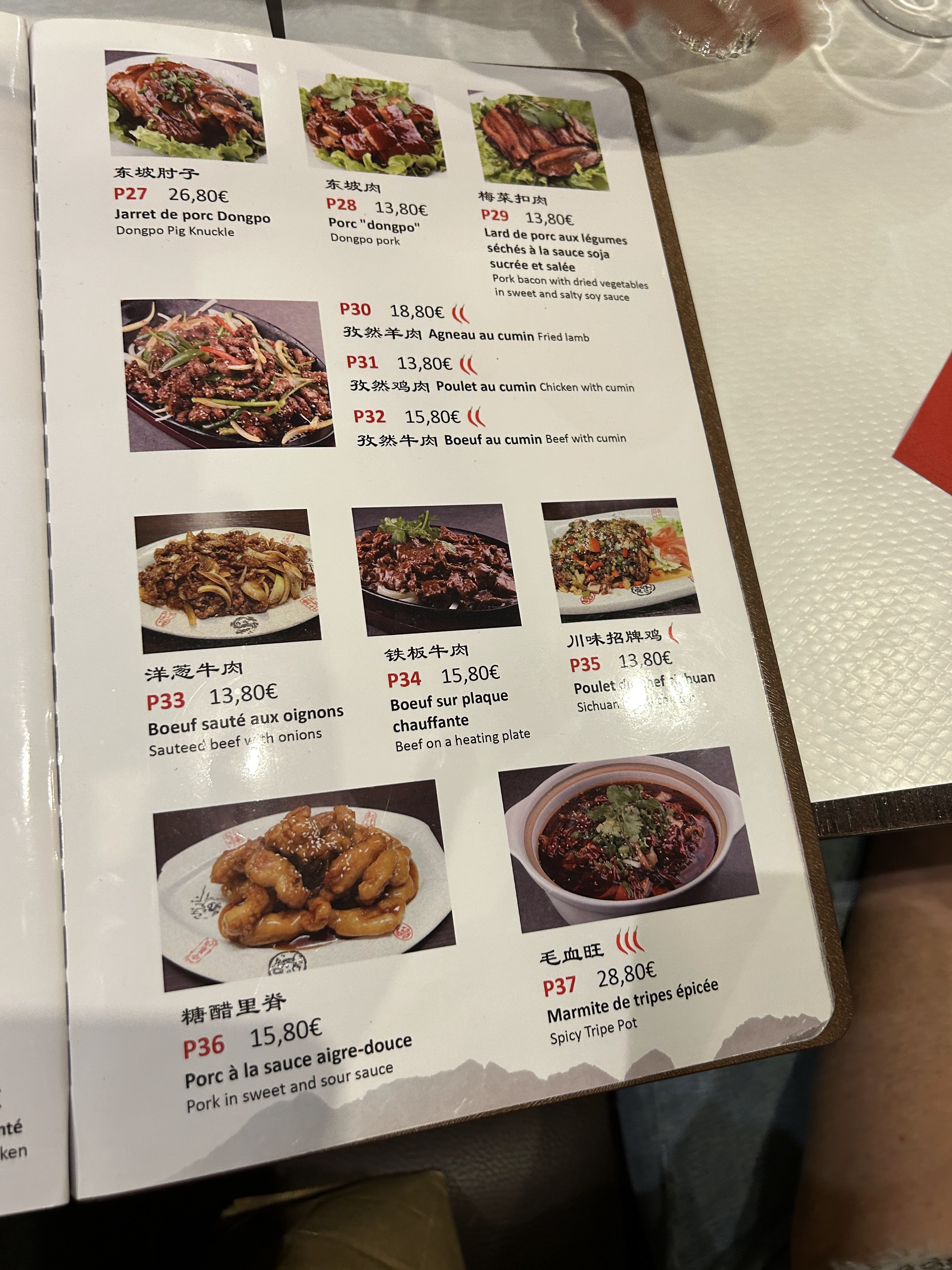 Un restaurant du Sichuan bien noté à Paris. Il y a beaucoup de restaurants du Sichuan à Paris, mais celui-ci a une bonne note. Il doit avoir quelque chose de spécial. Effectivement, nous avons eu un très bon repas ! Tout d'abord, les Chinois vont manger En général, je ne commanderai pas le genre d'assiette avec un plat et un peu de riz. Ce type de partage de repas n'est pas adapté aux habitudes alimentaires de la cuisine chinoise. Sur un autre menu, il y a différents plats dans différentes catégories. Chaque plat a un petit logo de poivre, qui représente le piquant du plat. Si vous aimez les plats épicés, vous pouvez demander au patron d'en ajouter plus ! Gros, nous deux J'ai commandé du Maoxuewang, du bœuf bouilli et des poivrons verts en peau de tigre, qui étaient tous épicés, tellement incroyables ! Mais les amis qui ne peuvent pas manger de nourriture épicée devraient faire attention, car c'est vraiment un défi hahaha. Le prix n'est pas trop cher, à l'exception du poisson bouilli, du mao xuewang et d'autres gros plats nécessitant une cuisinière, qui coûtent entre 25 et 30 euros, les autres plats coûtent en gros dans les 15 euros. Délicieux ! J'y retournerai !